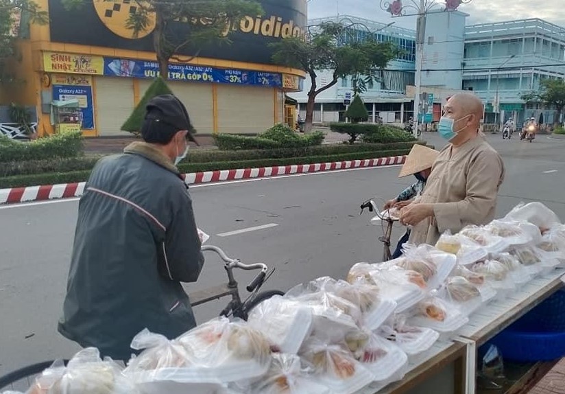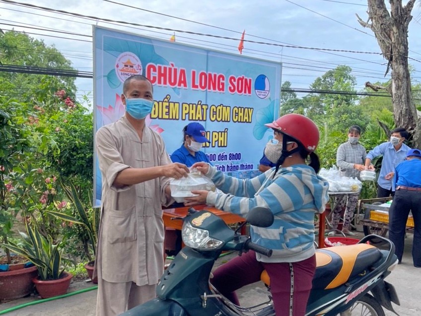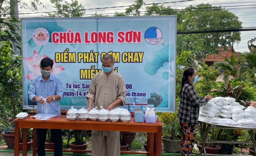 Hôm nay 8/7, các tự viện tỉnh Đồng Tháp đã hưởng ứng chương trình hỗ trợ người dân nghèo bằng hoạt động nấu và phát cơm miễn phí đến người dân tại địa phương