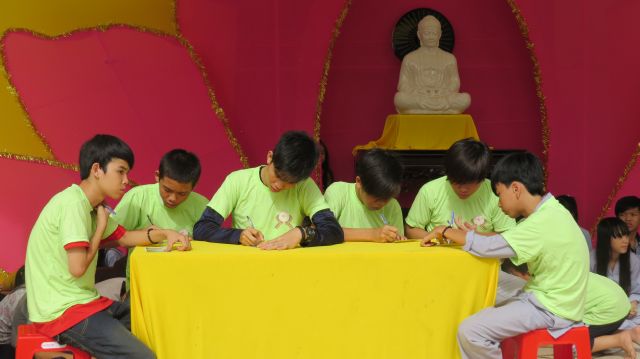 Trước khi bước vào buổi cầu nguyện và tư vấn, các bạn trẻ được BTC phát giấy ghi lời ước nguyện để đăng ký tư vấn. Những lời nguyện cầu ghi lại ước mơ về tương lai tươi đẹp lần lượt được chư tôn đức tập hợp và dâng lên trong lễ cầu nguyện, có những ước mơ thiết thực và gần gũi hết sức dễ thương như “con mong mình học giỏi cho cha mẹ vui lòng”, “con mong mau lớn kiếm được nhiều tiền báo hiếu cho ba mẹ”. Có những ước mơ về nghề nghiệp tương lai như: “con mong mình sẽ thi đậu vào trường đh Nha Trang”, “con muốn trở thành kỹ sư”, “con muốn trở thành công an”,…