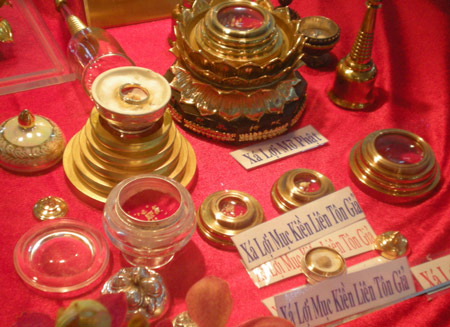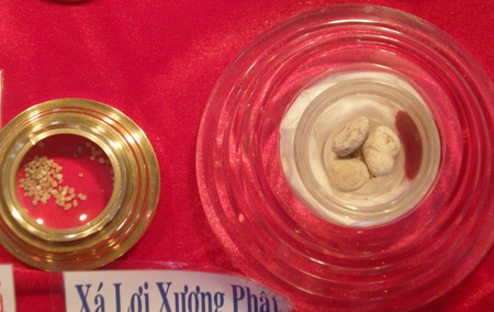 Xá lợi của Phật gồm có xá lợi xương, máu,mật và mỡ. Có xá lợi lớn bằng đầu ngón tay út, có xá lợi nhỏ như hạt mè, xá lợi máu đỏ, xá lợi mật màu vàng đất, xá lợi xương màu trắng, có những hạt xá lợi trong, sáng, láng và có màu xanh như ngọc bích hoặc đen như hạt huyền, chưa bao giờ tôi được nhìn thầy nhiều xá lợi đến vậy! Nghĩ đến ai đó có lần nói với tôi rằng thấy xá lợi Phật cũng như nhìn thấy Phật, tôi không nén được sự bồi hồi, xúc động.