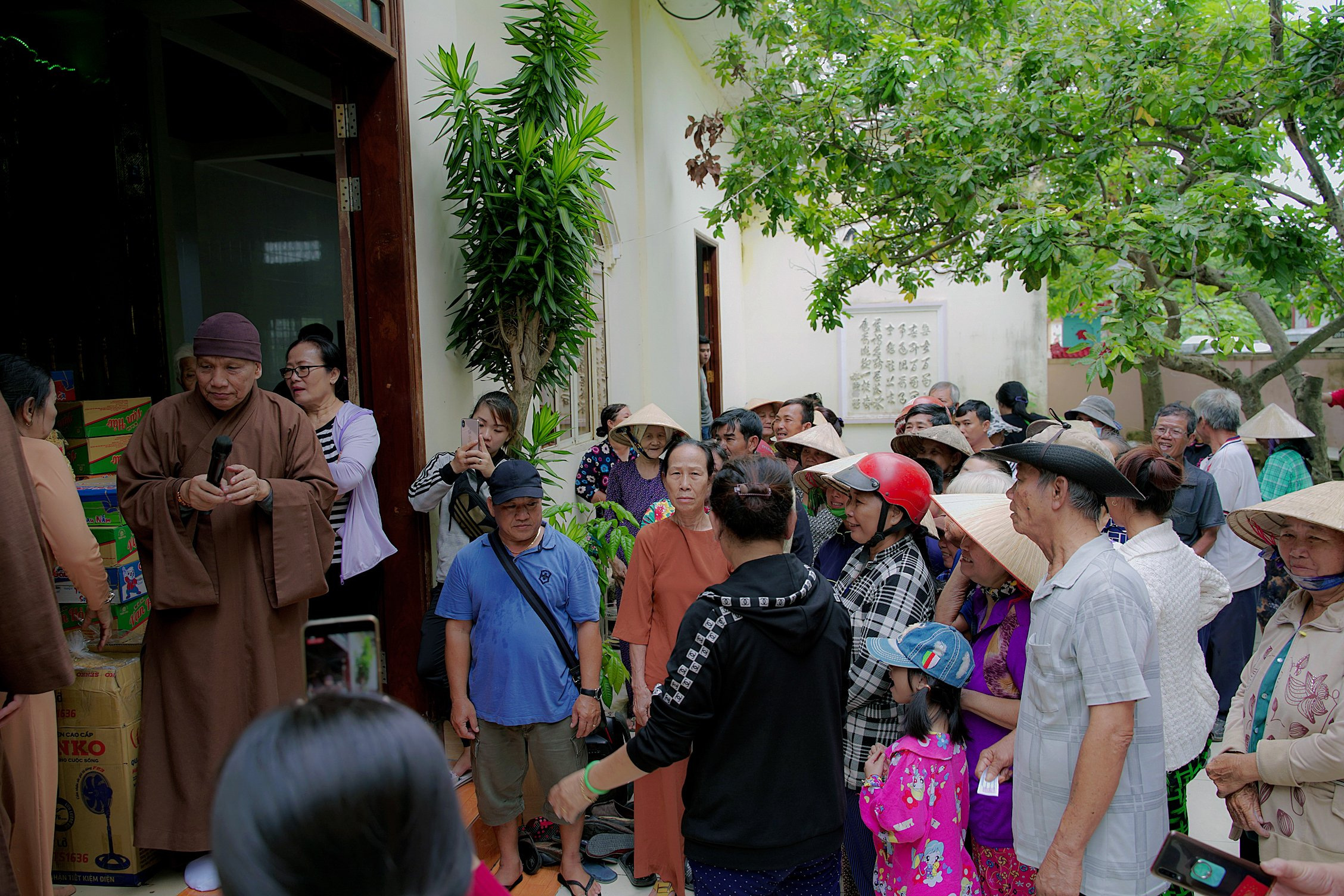 Thấu được lẽ đó, Hòa thượng đã vận động các nhà hảo tâm, mạnh thường quân và quý Phật tử xa gần chung tay tổ chức chuyến từ thiện để trao 200 phần quà cho bà con nơi vùng lũ dâng cao.