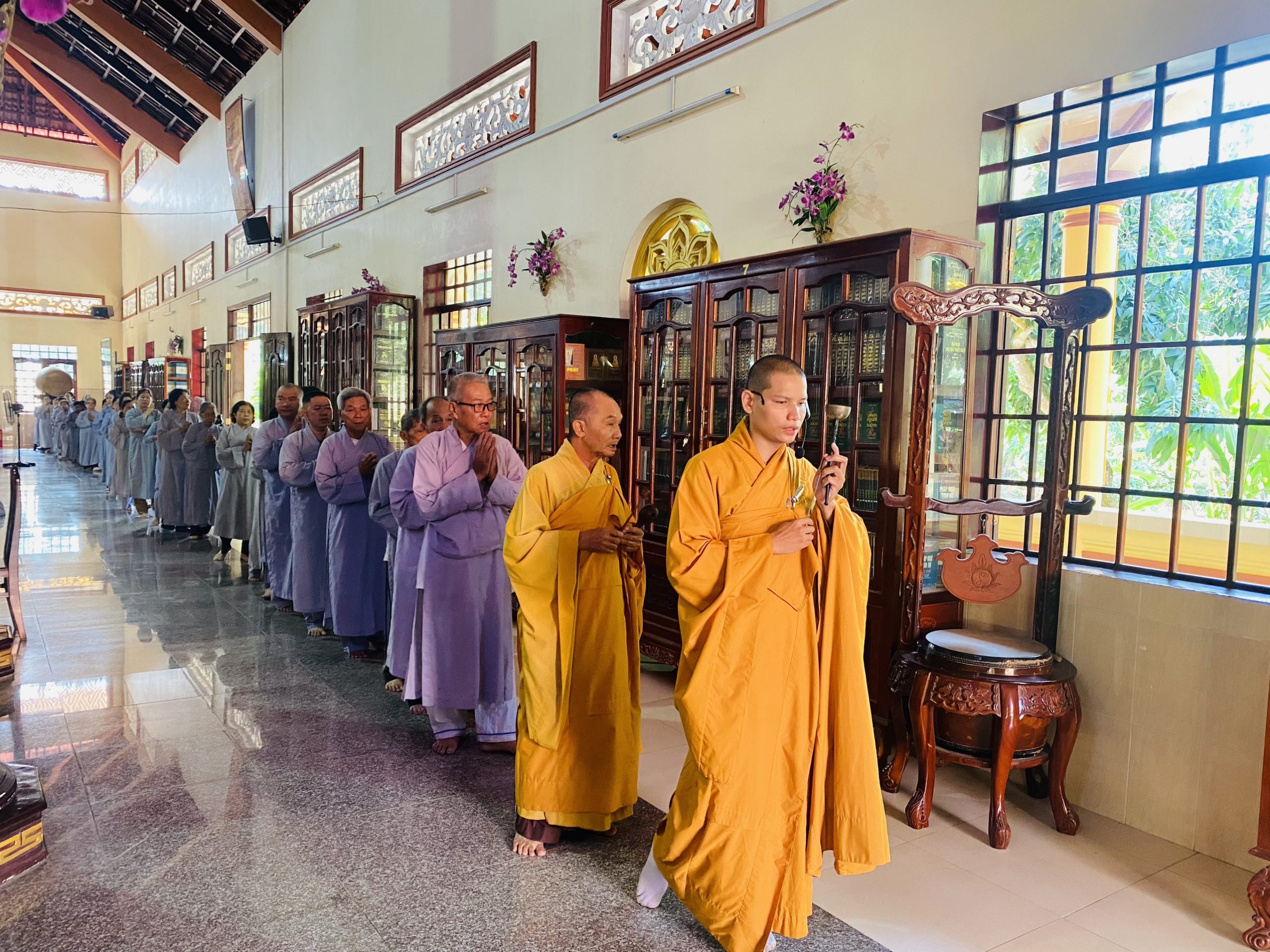 Tiếp đó, theo nghi thức thọ trai và kinh hành niệm Phật.