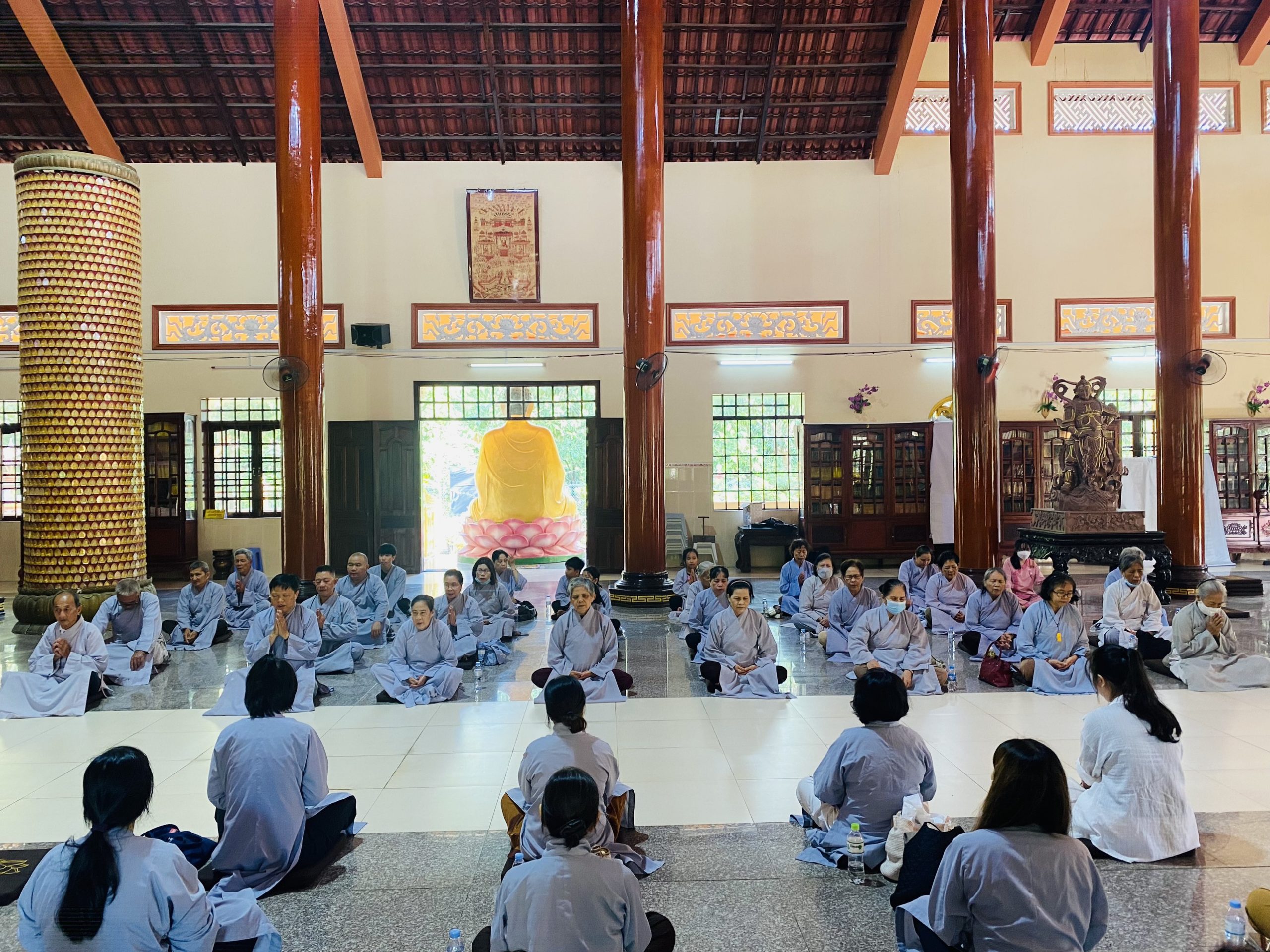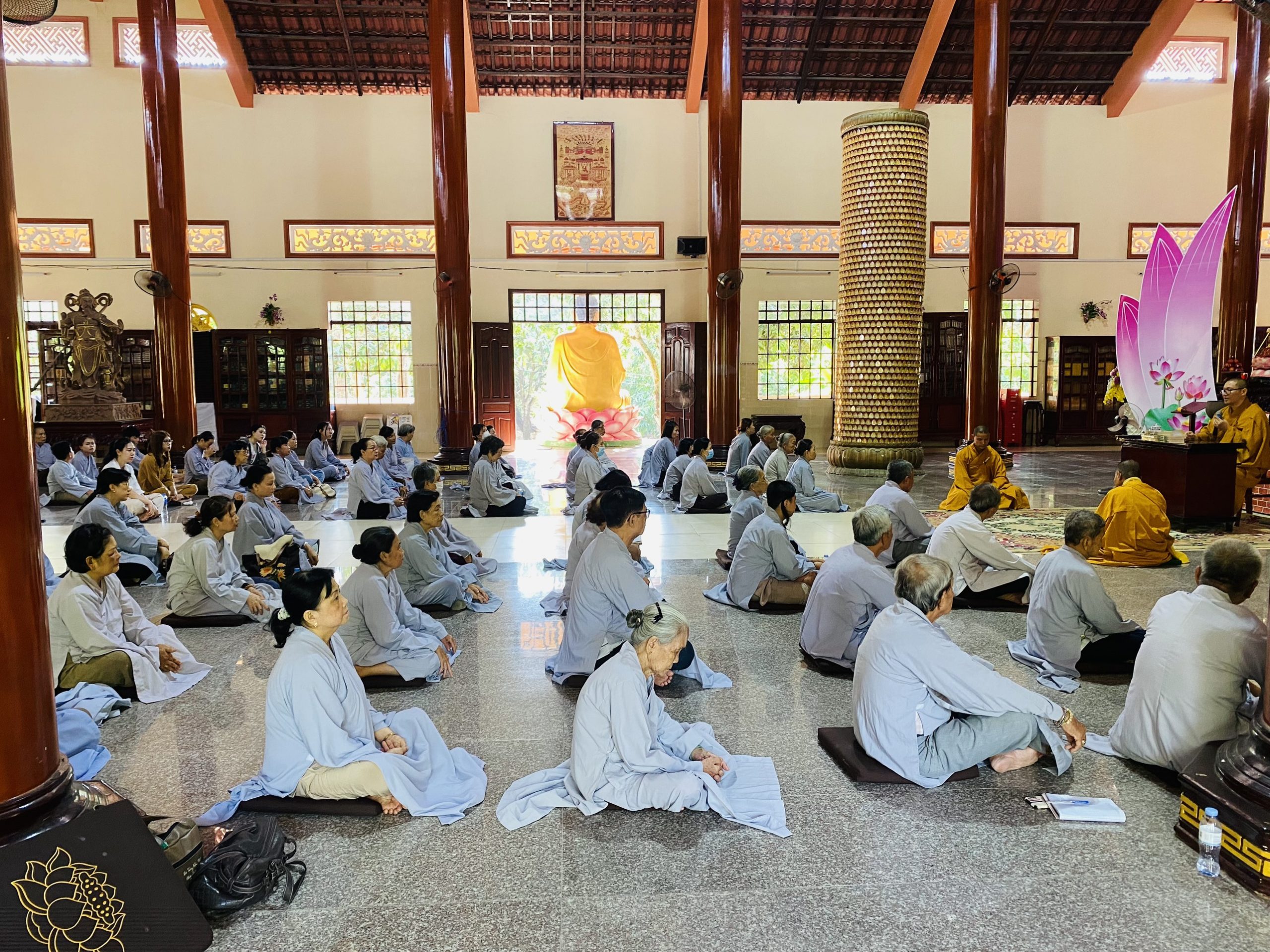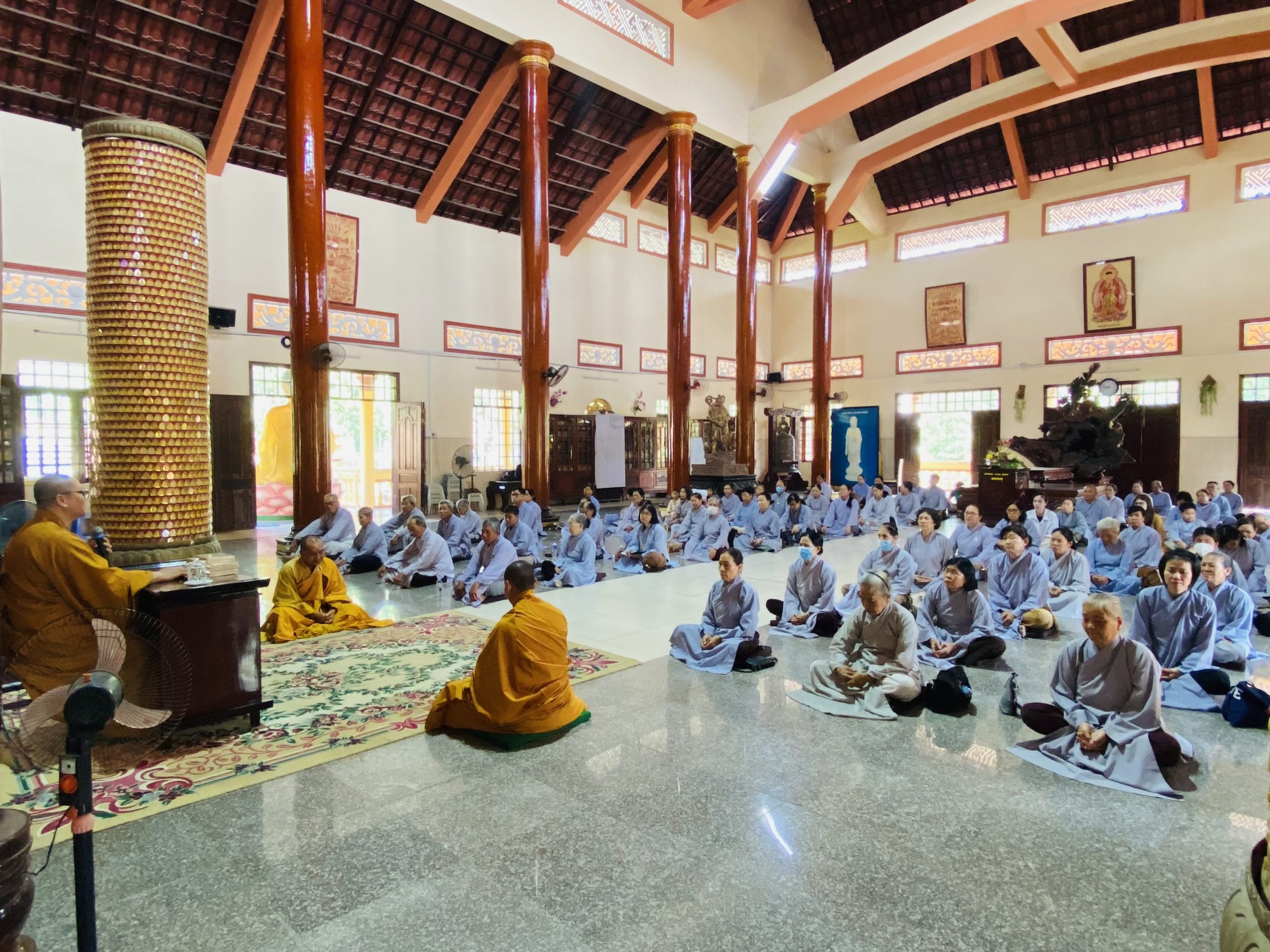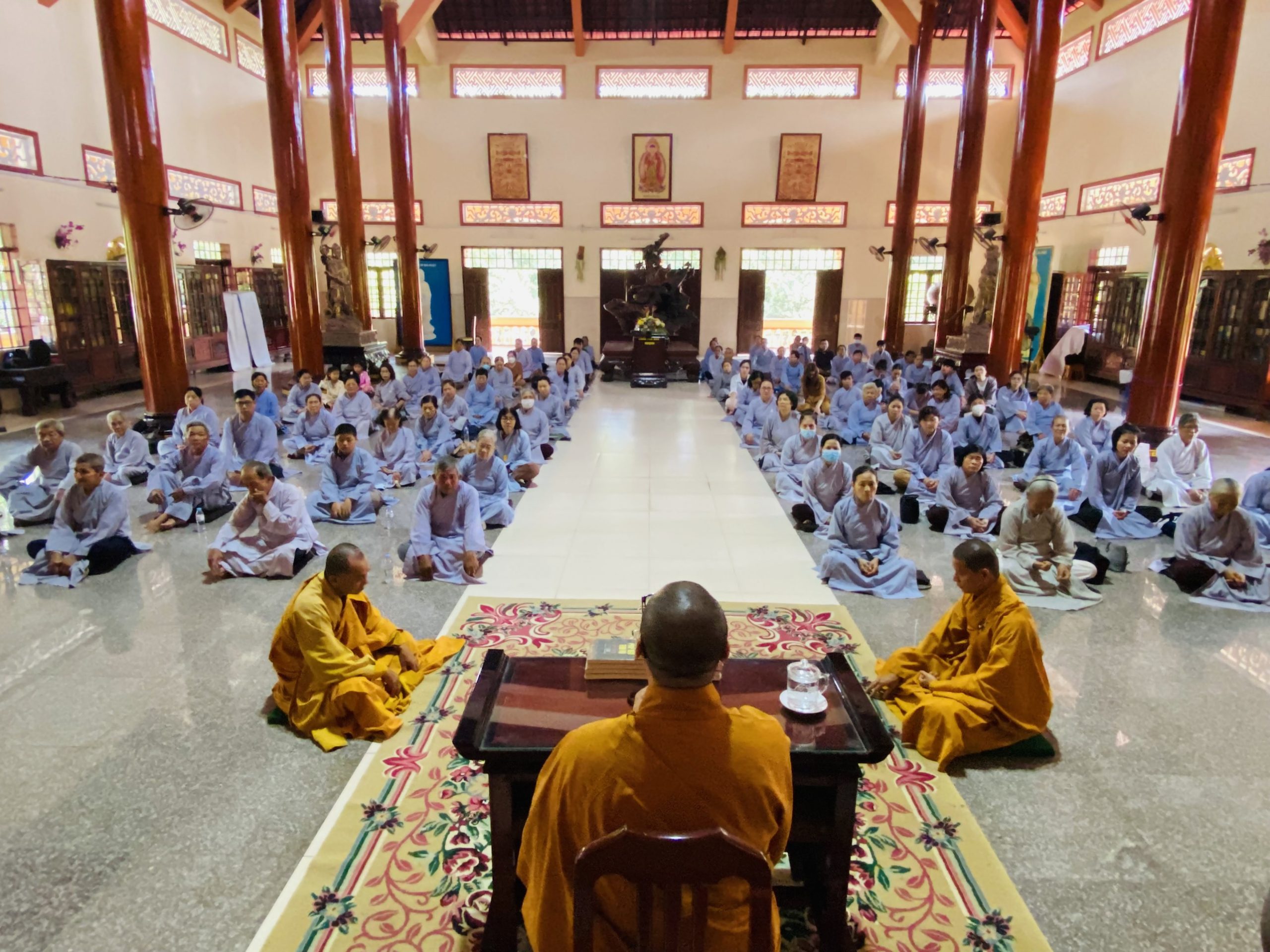 Sau khi thức chúng, buổi chiều, quý Phật được nghe Hòa thượng Viện chủ Thích Thiện Xuân, Thượng tọa trụ trì Thích Minh Thuận hướng dẫn học Pháp.