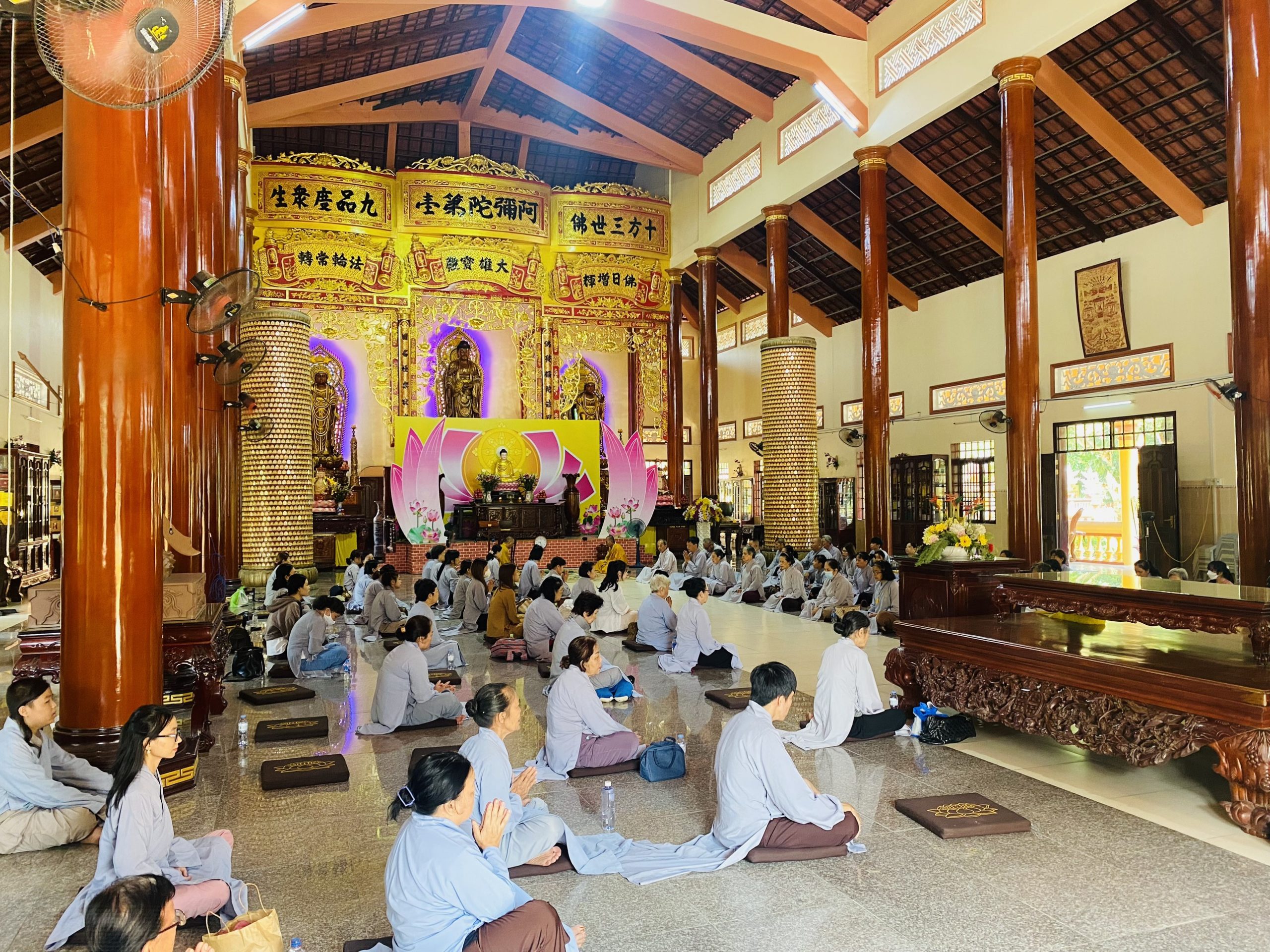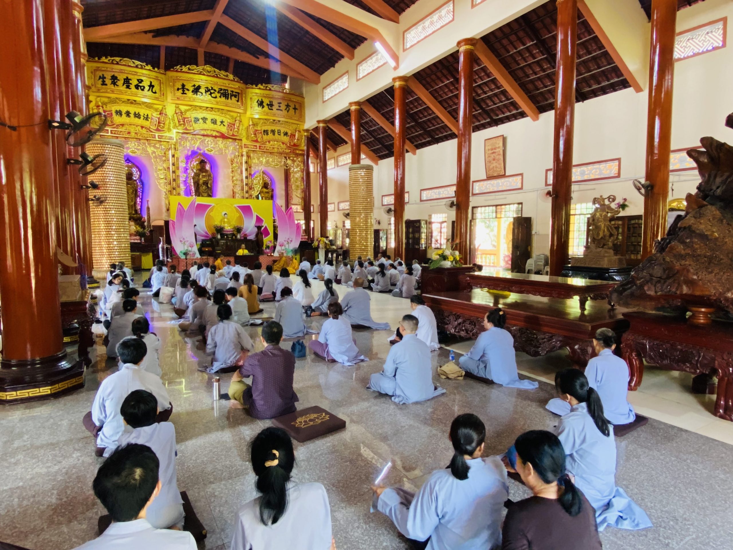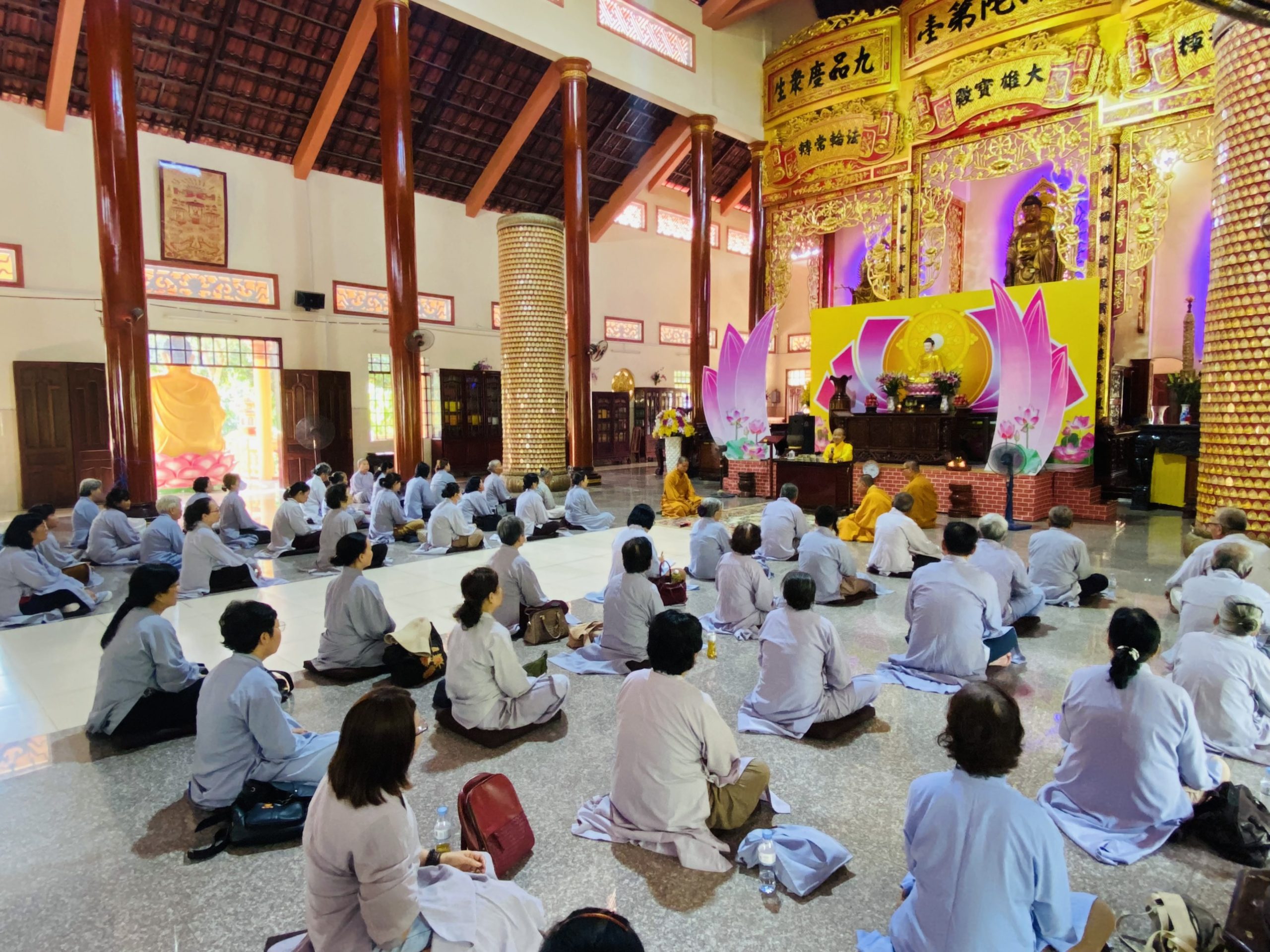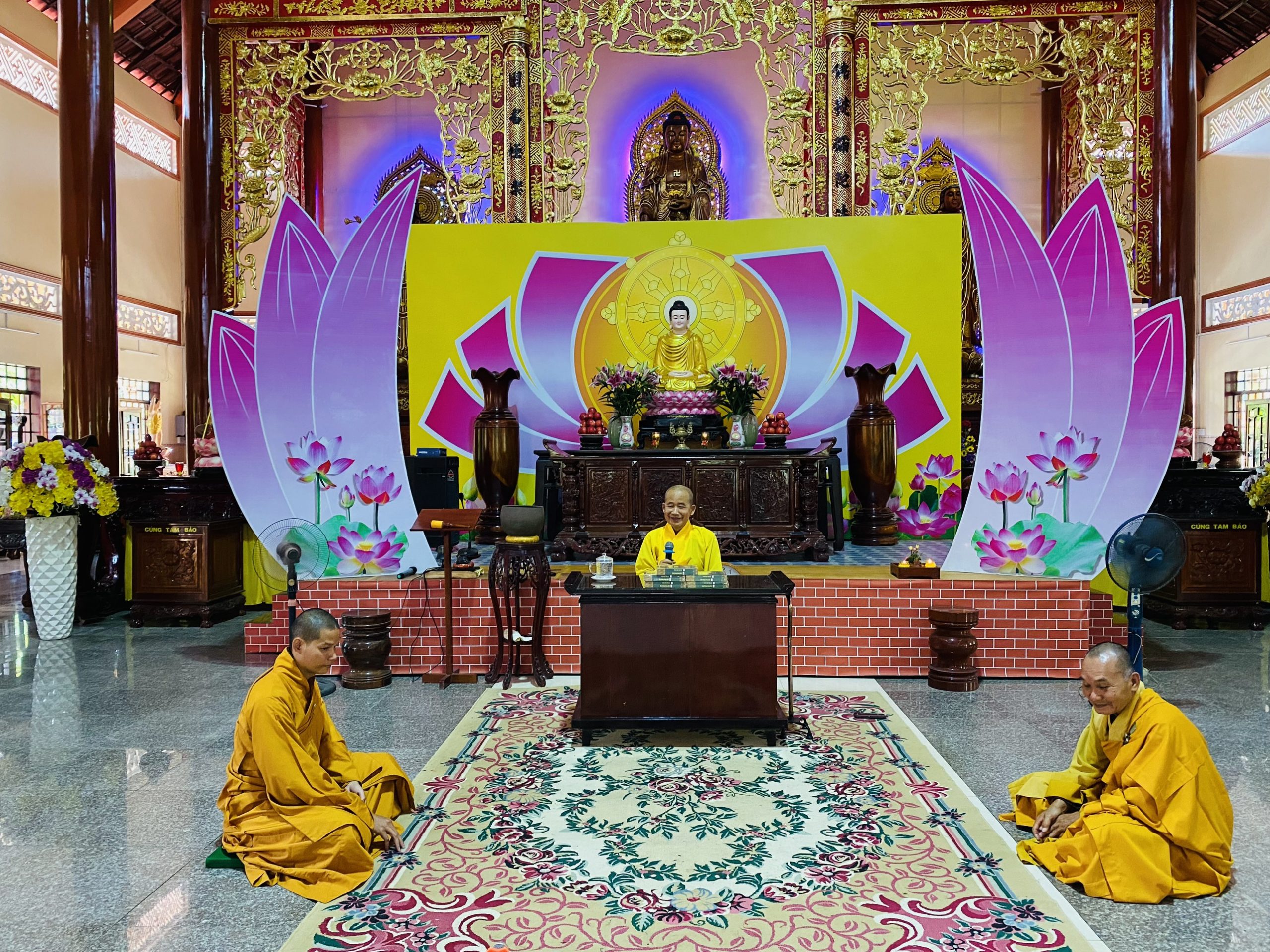 Sau khi thức chúng, buổi chiều, quý Phật được nghe Hòa thượng Viện chủ Thích Thiện Xuân, Thượng tọa trụ trì Thích Minh Thuận hướng dẫn học Pháp.