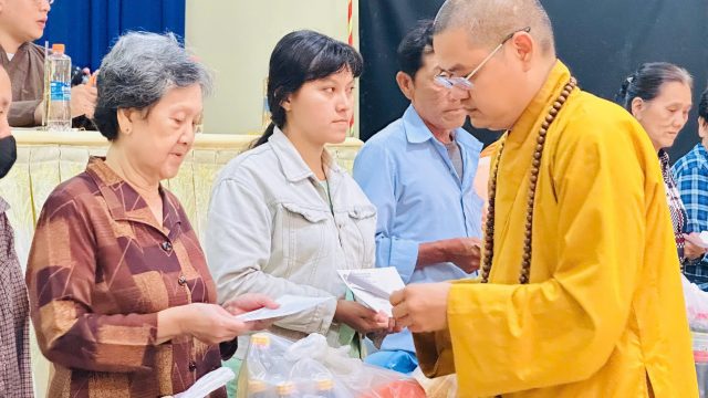 Quang cảnh buổi trao quà nhân dịp Vu lan năm 2025 tại chùa Phật Ân