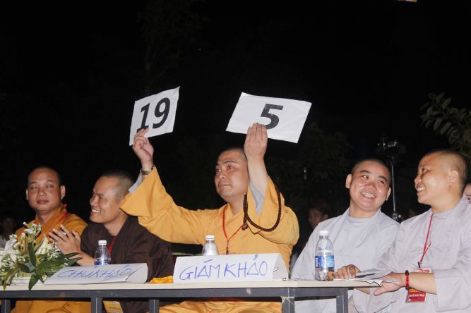 Đêm chung kết vinh dự có sự chứng minh của quý thầy cô trong Ban Điều phối Hội trại bao gồm ĐĐ. Thích Phước Huệ, chủ nhiệm hội Khai Tâm, Tổng điều phối hội trại và sự có mặt của Ban Giám Khảo gồm có, ĐĐ. Thích Lệ Minh làm chánh chủ khảo, ĐĐ. Thích Nguyên Chính, SC. TN Hoàn Toại, SC. TN Như Nhân là ba vị giám khảo của đêm thi đã thu hút đông đảo trại sinh tham gia biểu diễn cũng như quý Phật tử xa gần đến tham dự. Sau vòng loại cuộc thi văn nghệ chiều ngày 28/6, Ban Giám Khảo đã chọn ra 20 tiết mục có số điểm cao nhất bước tiếp vào đêm chung kết này với sự dẫn dắt nội dung chương trình của MC Nguyễn Sơn và Thuý Nga.