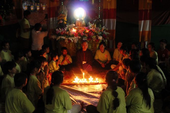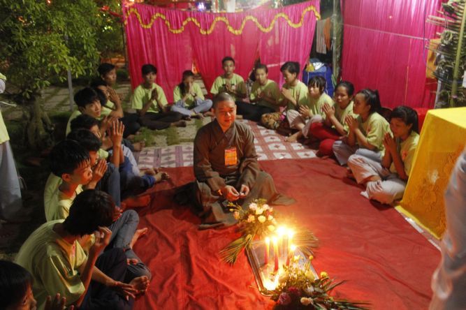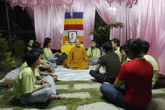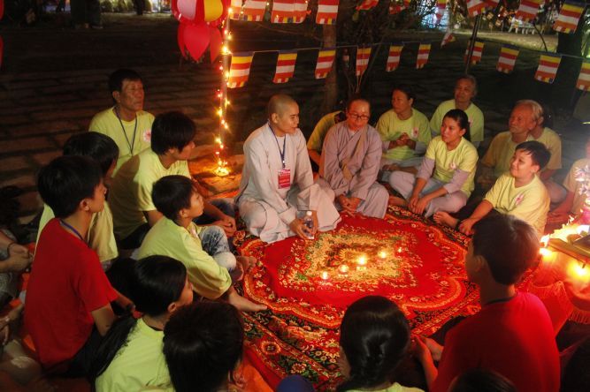 Cuối ngày, các anh chị TNV cũng có những thời khắc lắng đọng tâm tư cùng quý thầy cô. “Các con biết không, cô chắc hẳn rằng, qua mấy ngày gắn bó cùng Hội trại này, tại ngôi chùa Quê Hương, ngoài ba lô trĩu nặng quần áo, các con còn đem về một ba lô nữa, đó là loại ba lô có tên “kinh nghiệm sống” (SC. Hoàn Toại dịu dàng nhắn gửi).