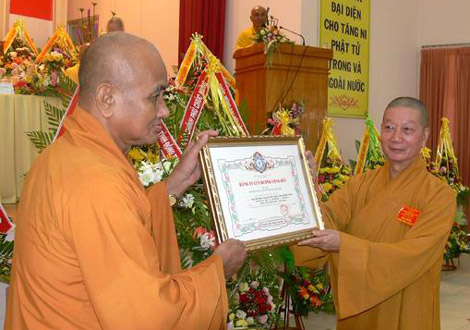 TWGH tặng bằng tuyên dương công đức cho Ban Trị sự Phật giáo tỉnh Đồng Tháp nhiệm kỳ V