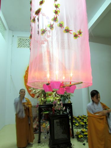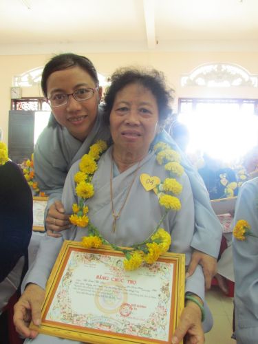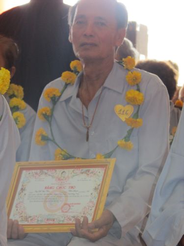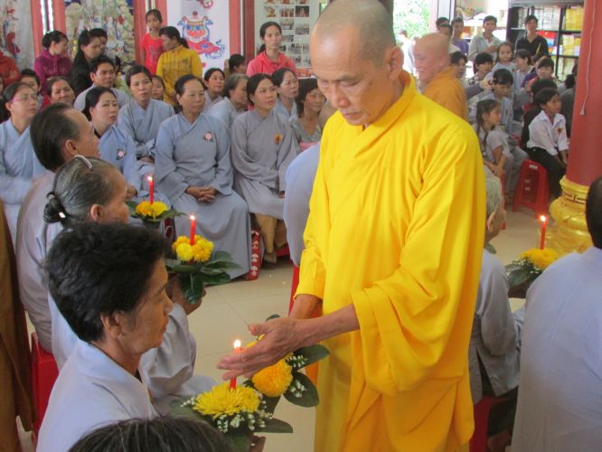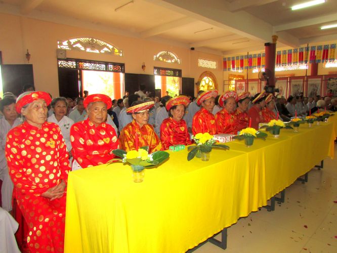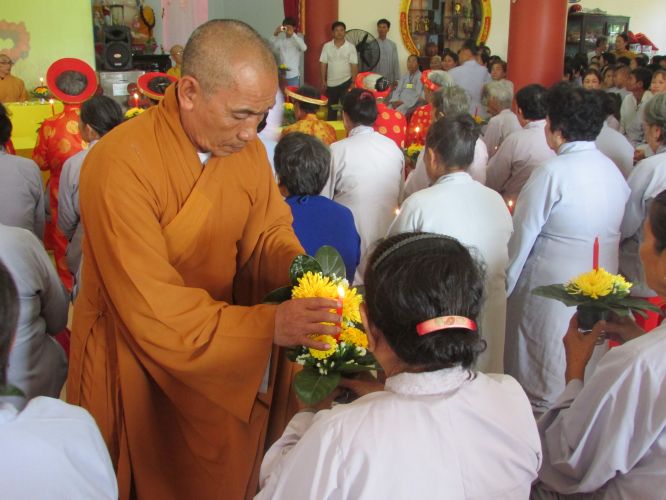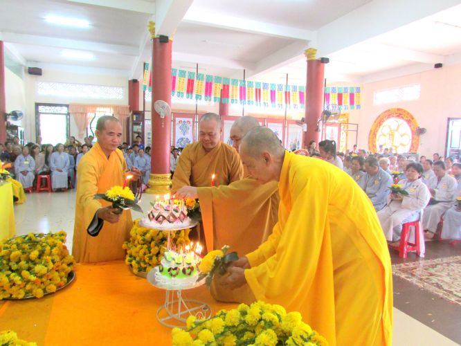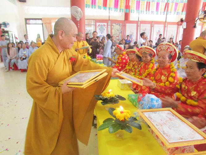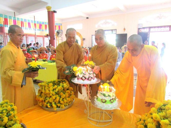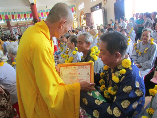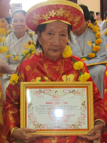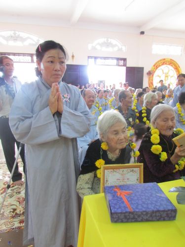 Buổi lễ được diễn ra rất ấm cúng, trang nghiêm. Các cụ và con cháu thật sự hạnh phúc khi được chư tôn đức truyền ngọn nến tục mạng đến cho mình, đeo những tràng hoa vạn thọ, tặng bằng tuyên dương công đức, cắt bánh mừng thọ, tặng lộc cho các cụ.