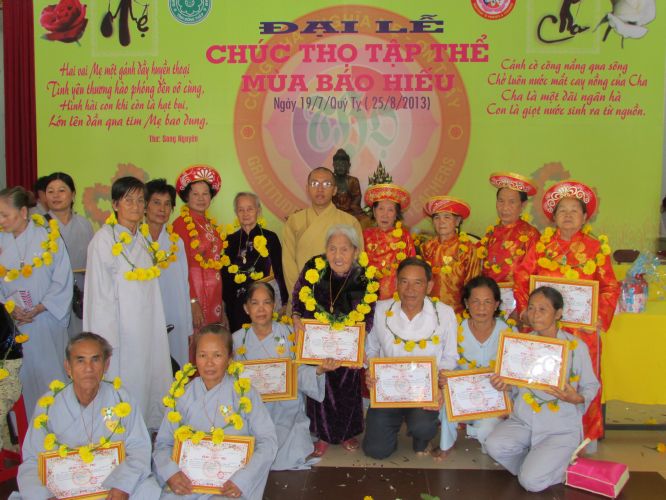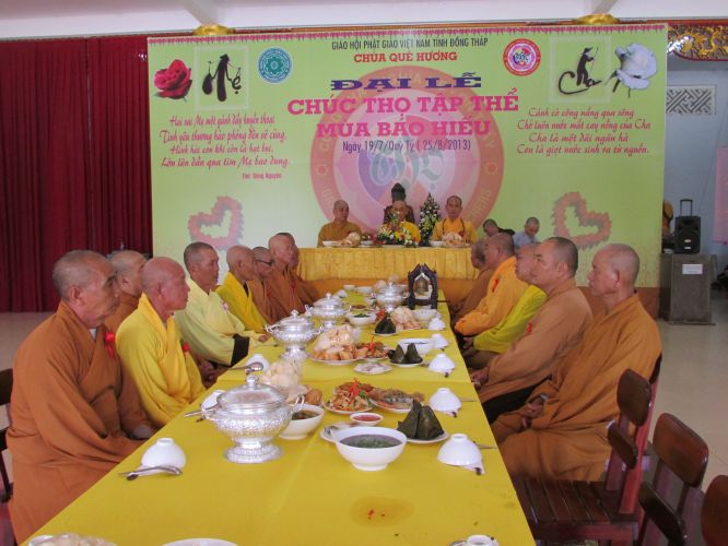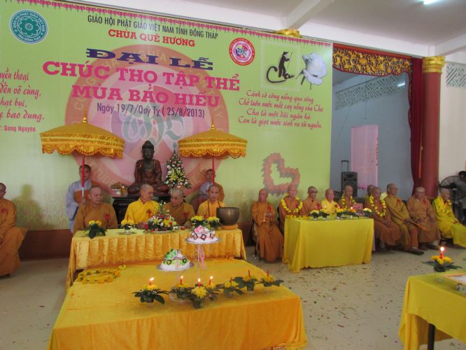 Sáng 25/8/2013, tại chùa Quê Hương, xã Phú Đức, huyện Tam Nông, tỉnh Đồng Tháp đã tổ chức lễ chúc thọ cho hơn 150 cụ từ 60 đến trên 90 tuổi. Mục đích của buổi lễ nhằm thể hiện tấm lòng tri ân, báo hiếu của những người con đối với ân đức cao dày của ông bà, cha mẹ. Và đồng thời cũng nêu cao tấm gương hiếu hạnh của đức Đại Hiếu Mục Kiền Liên cho hậu thế noi theo, để trên cõi trần gian này không còn những người con ngỗ nghịch làm buồn lòng cha mẹ.