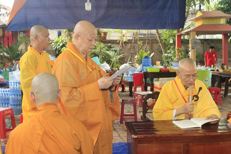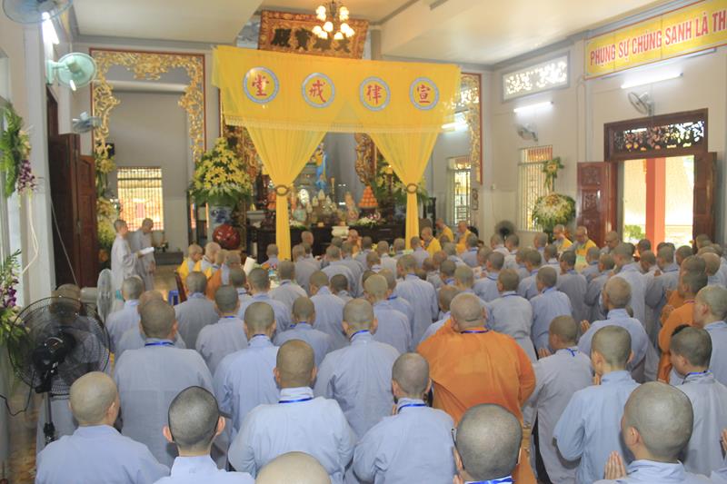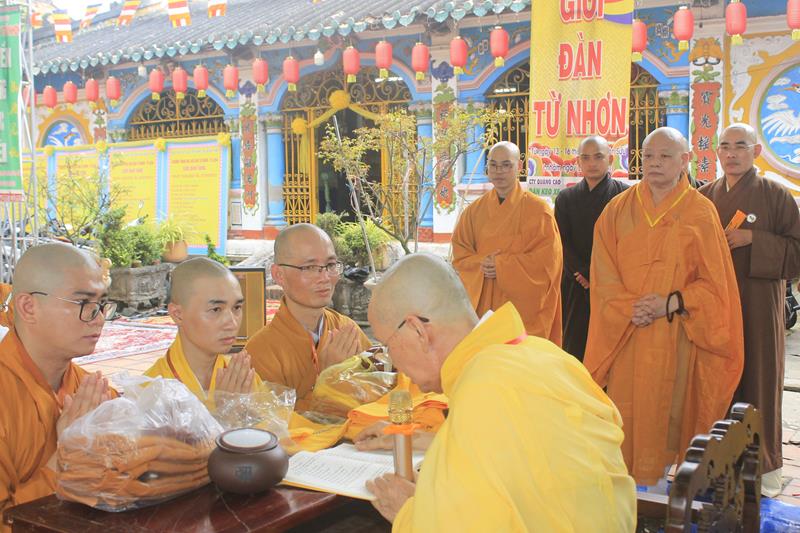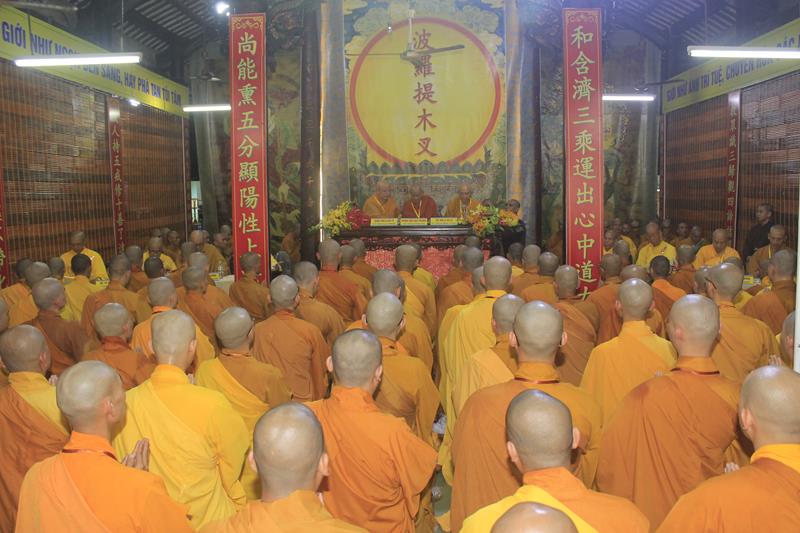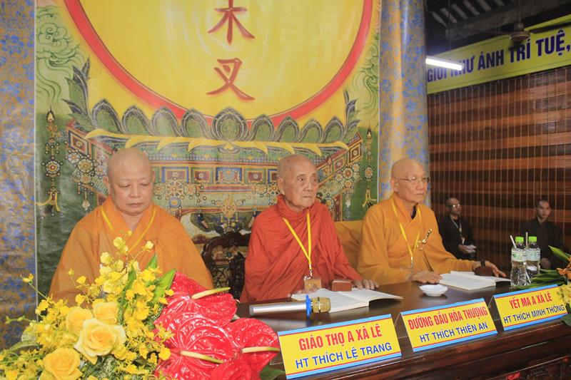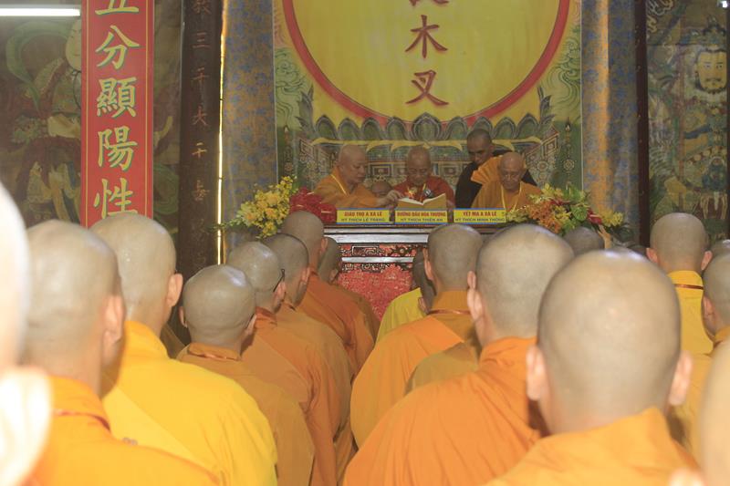 Trước Tổ đường, chư tôn đức Ban Nghi lễ đã cung an chức sự và cung thỉnh HT.Thích Thiện An đương vi Hòa thượng Đường đầu, HT.Thích Minh Thông làm Yết-ma, HT.Thích Chơn Minh, HT. Thích Lệ Trang làm Giáo thọ cùng bảy vị Tôn chứng: HT.Thích Thiện Phương, HT.Thích Thiện Nghĩa, HT.Thích Phước Đức, TT.Thích Thiện Xuân, TT.Thích Thiện Ngữ, TT.Thích Thiện Lâm và ĐĐ.Thích Thiện Phước và ĐĐ. Thích Trí Khả điển lễ.