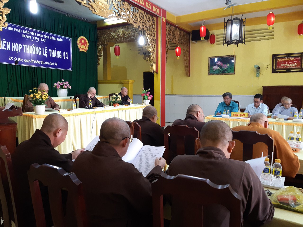 Nội dung phiên họp, chư tôn đức tập trung lắng nghe các báo cáo Phật sự đầu năm, đồng thời nghe biến về các văn bản của Hội đồng trị sự GHPGVN, công văn chỉ đạo hướng dẫn phòng chống dịch Corona, các công văn ban ngành chánh quyền tỉnh Đồng Tháp.