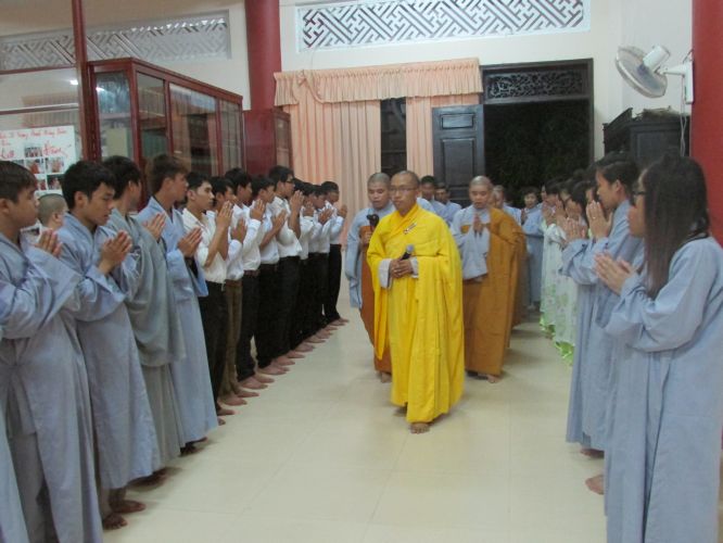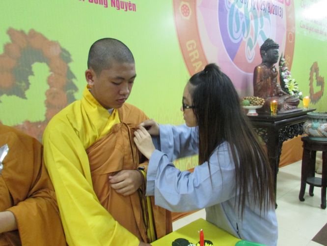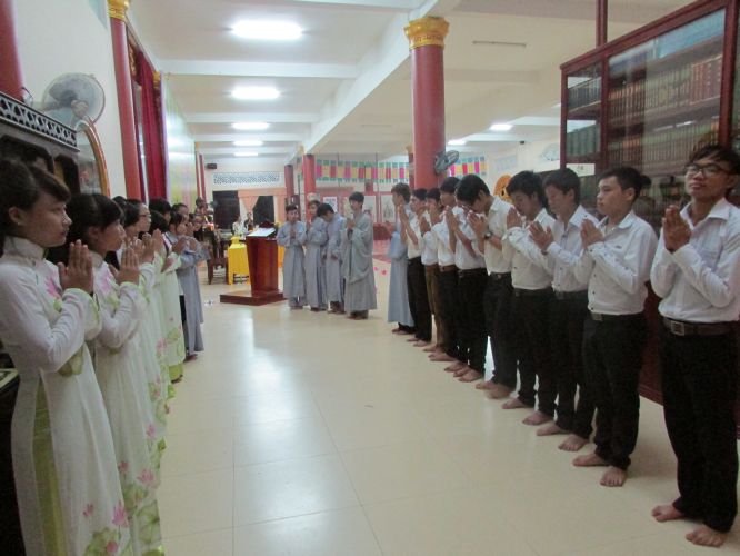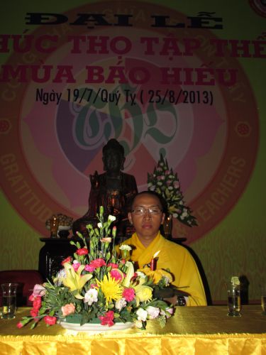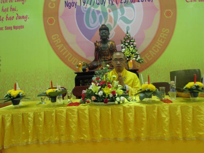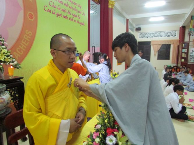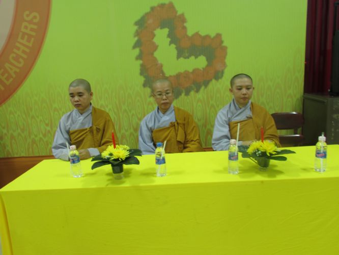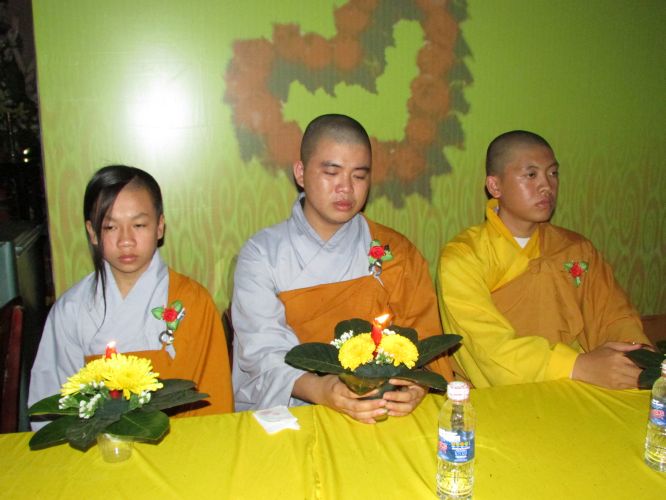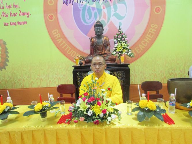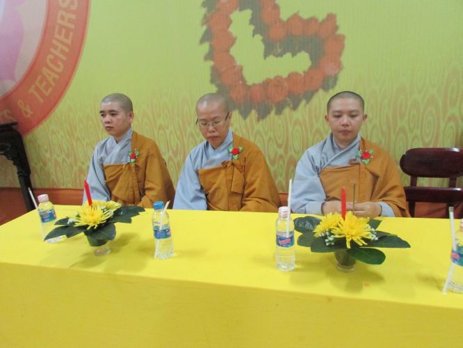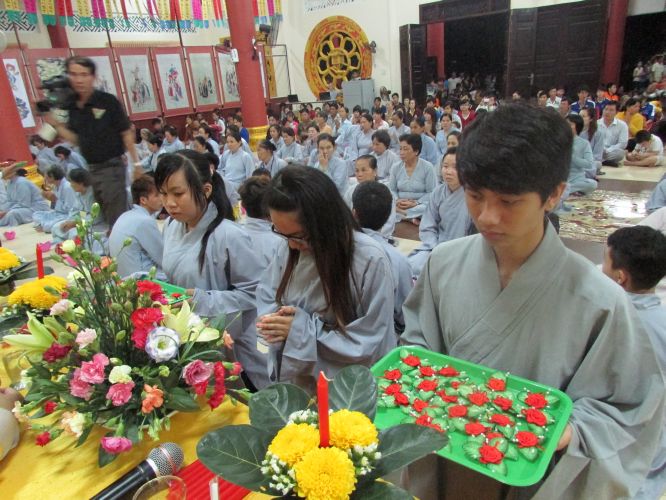 Mở đầu chương trình, quý thầy cô đã thực hiện nghi thức cài hoa hồng theo truyền thống Phật giáo. Đóa hồng vàng tinh khiết được cài lên cho chư tôn đức, những người đã thầm lặng hy sinh tuổi thanh xuân của mình để dấn thân phục vụ đạo pháp, quê hương. Đóa hồng đỏ xin gửi về cho những ai may mắn còn cha, còn mẹ trên đời. Và đóa hồng trắng xin chia buồn cho những ai đã mất đi cha và mẹ.