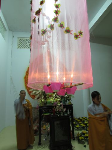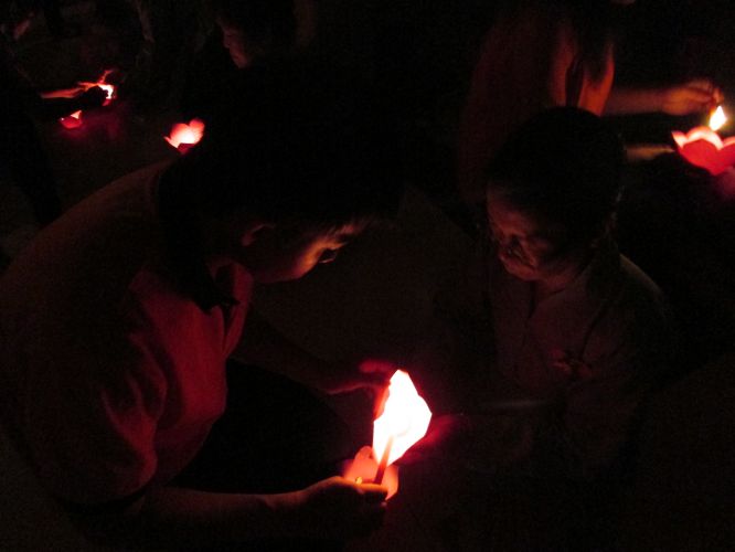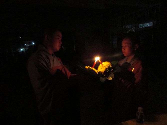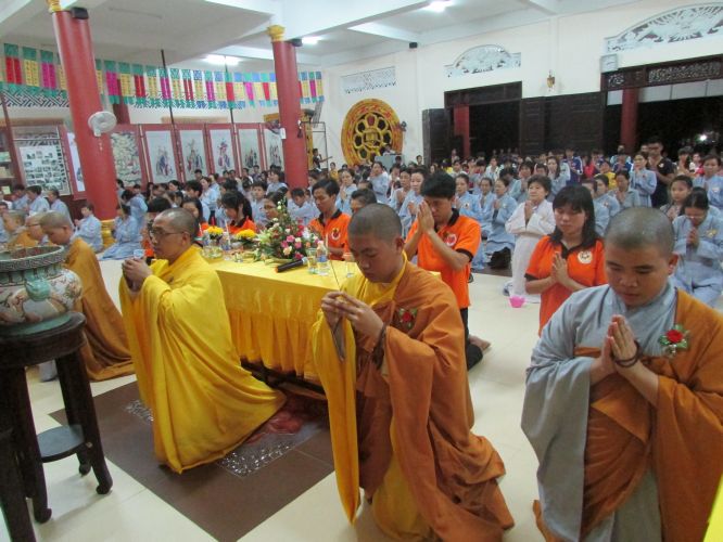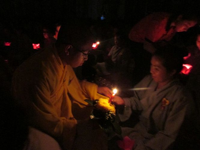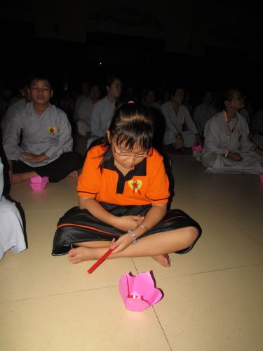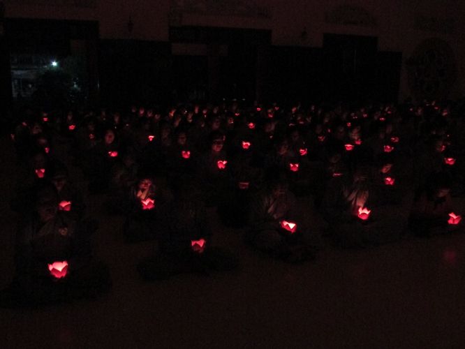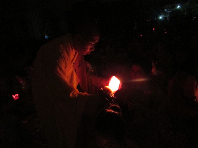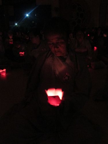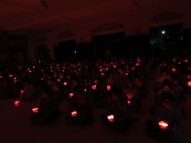 Chương trình đốt nến được chư tôn đức thực hiện trong trang nghiêm lắng động. Tất cả hội chúng cùng vận lòng thành hướng về cha và mẹ, tưởng nhớ thâm ân trời biển mà một đời Người đã thầm lặng hy sinh. Từng ngọn nến hồng được thắp sáng, truyền trao đến mọi người, là từng tấm lòng của các con cầu nguyện về cho cha và mẹ. Mong Người được mạnh khỏe, bình an, những vị đã mất sớm siêu sanh về miền tịnh cảnh.
