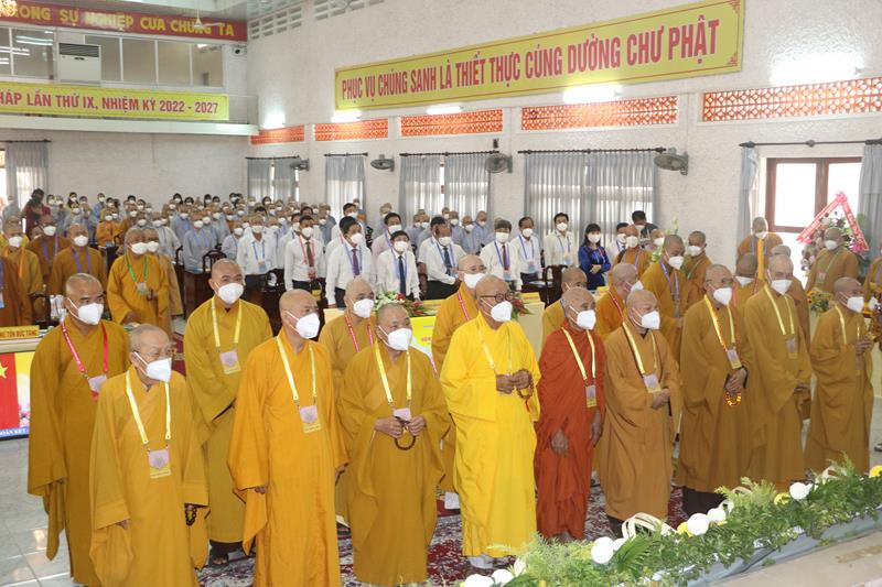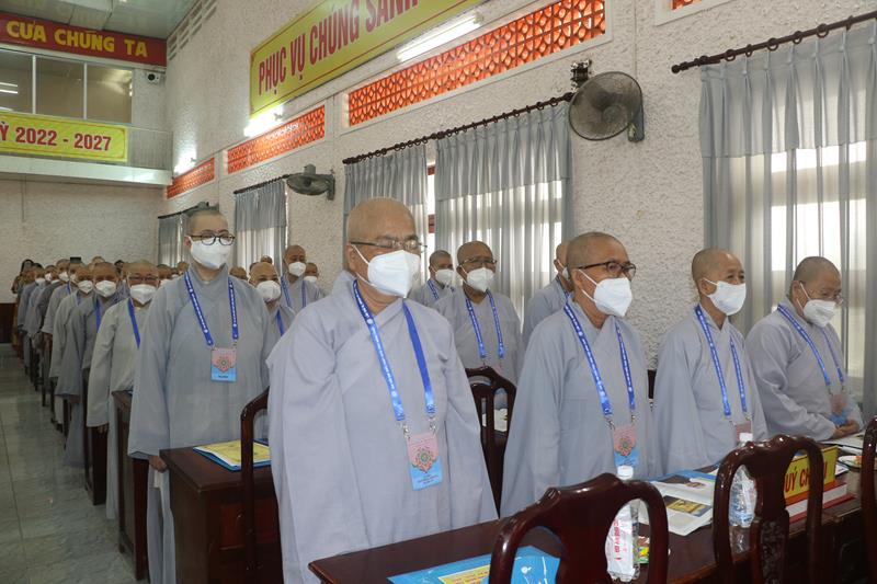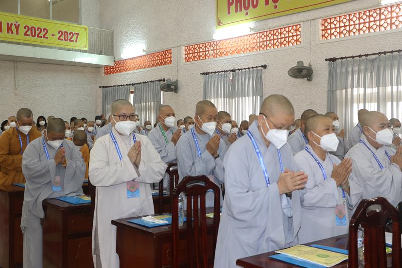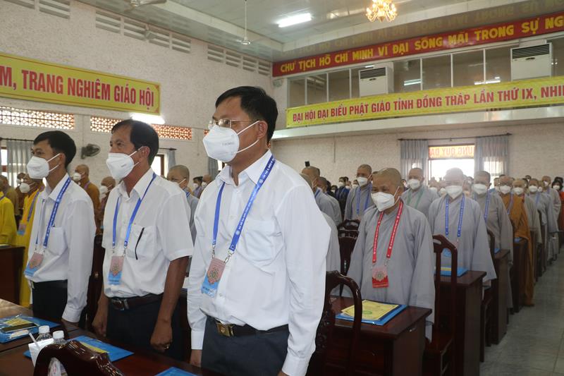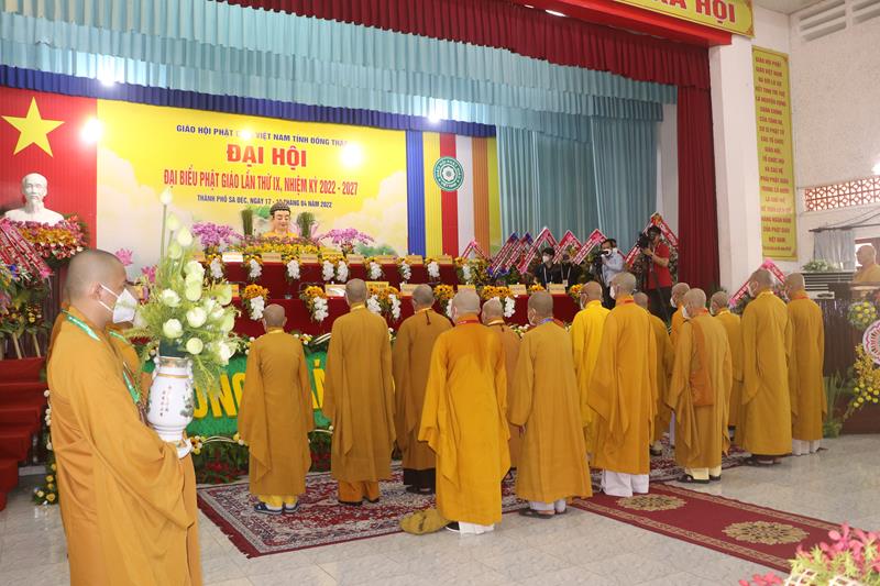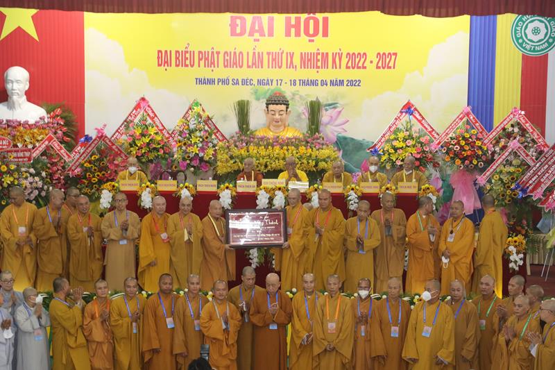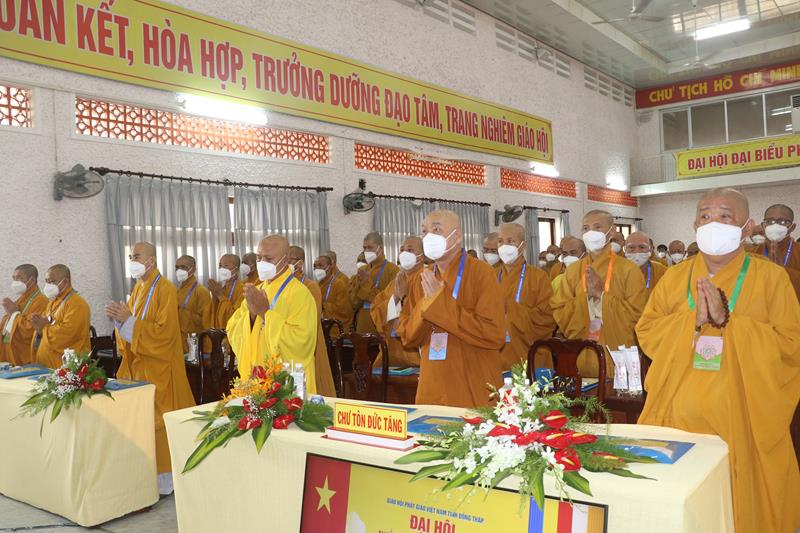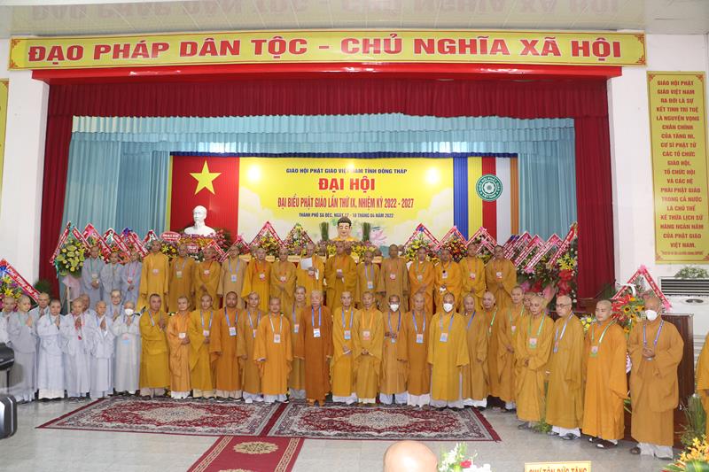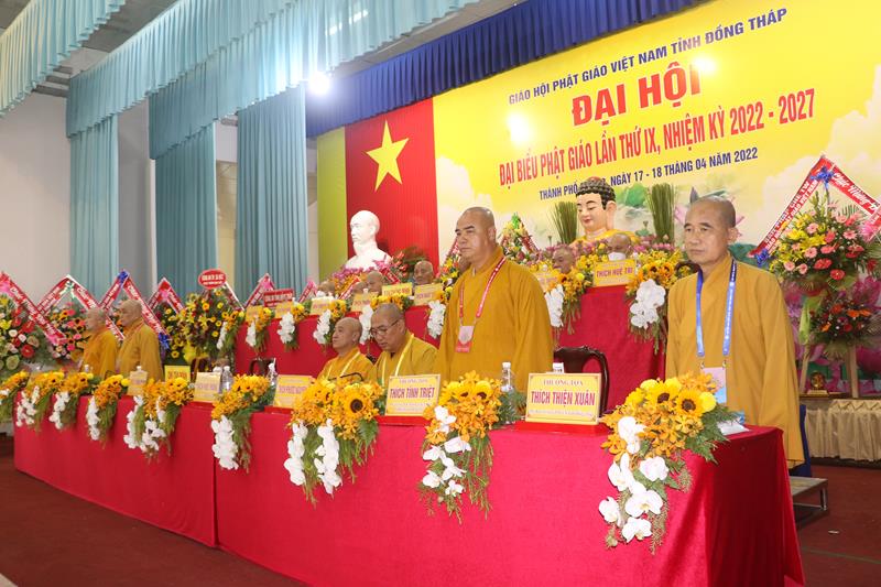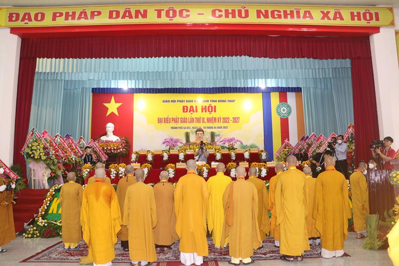 Song song đó, Đại hội cũng suy cử những Tăng Ni, Phật tử đủ năng lực, đạo đức tham gia vào Ban Trị sự nhiệm kỳ mới để trực tiếp đảm nhiệm trọng trách điều hành công tác Phật sự tại tỉnh nhà. Với tin thần đoàn kết, hòa hợp của Tăng Ni, Phật tử tỉnh nhà, chúng tôi tin tưởng rằng Đại hội sẽ thành công tốt đẹp. Trong tinh thần đoàn kết hòa hợp, dưới sự chứng minh của Chư tôn đức Tăng Ni, các cấp chính quyền và toàn thể Phật tử có mặt hôm nay, với chủ đề “KỶ CƯƠNG – TRÁCH NHIỆM – ĐOÀN KẾT- PHÁT TRIỂN”, Đại hội Đại biểu Phật giáo tỉnh Đồng Tháp lần thứ IX nhiệm kỳ 2022-2027.