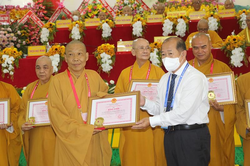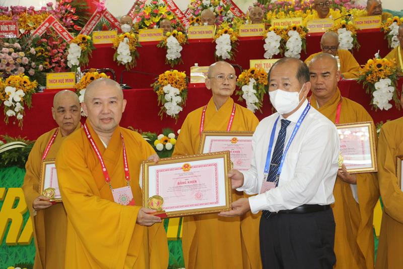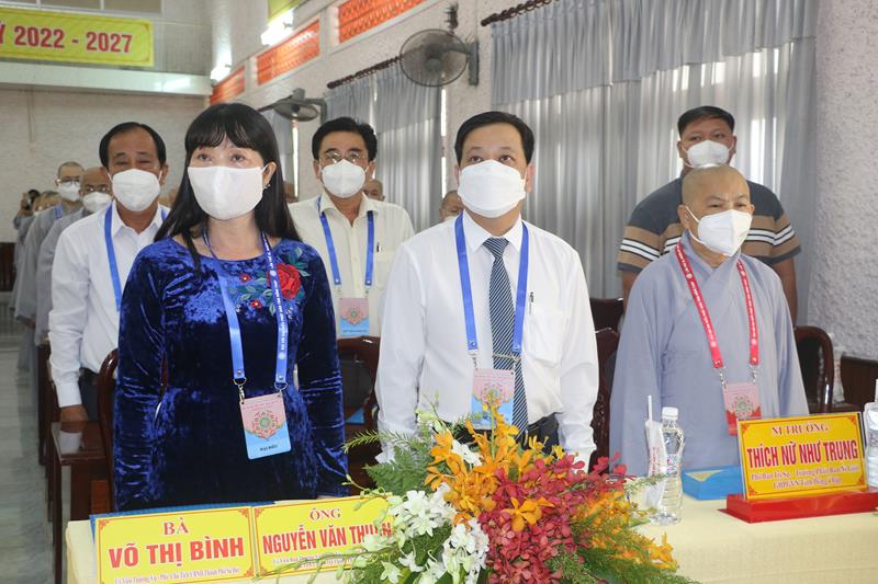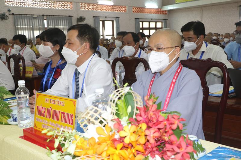Đại diện lãnh đạo chính quyền tỉnh, ông Đoàn Tấn Bửu, Phó Chủ tịch UBND tỉnh có bài phát biểu chúc mừng Đại hội. Ông biểu dương những đóng góp tích cực của hoạt động Phật sự trong thời gian qua của BTS GHPGVN tỉnh. Phật giáo tỉnh nhà đã gương mẫu chấp hành nghiêm quy định về phòng, chống dịch bệnh; ủng hộ nhiều kinh phí cho công tác phòng chống dịch bệnh covid-19, chủ động, kịp thời chỉ đạo dừng, hoãn nhiều hoạt động sinh hoạt tôn giáo để đảm bảo an toàn sức khoẻ cho Tăng Ni, Phật tử và xã hội.