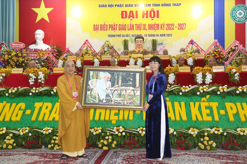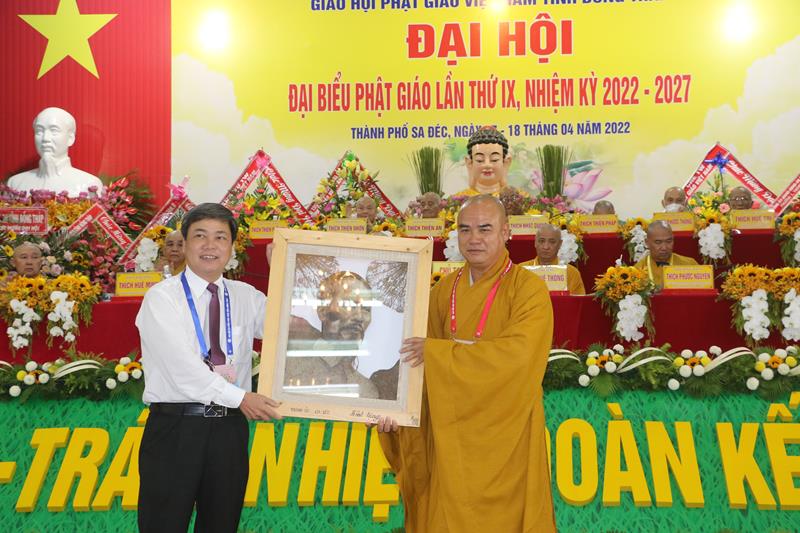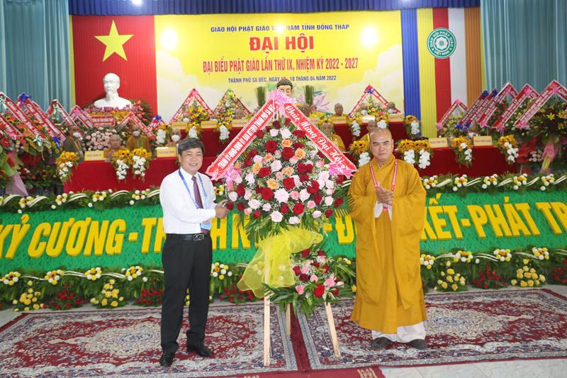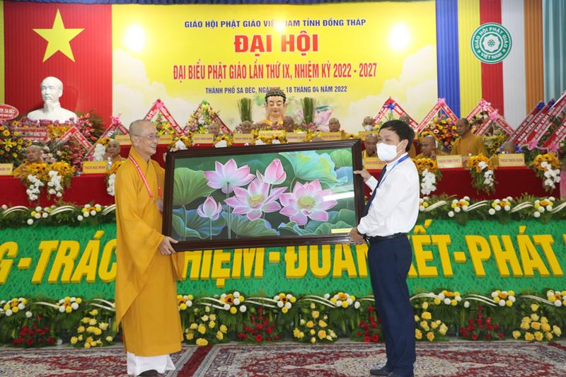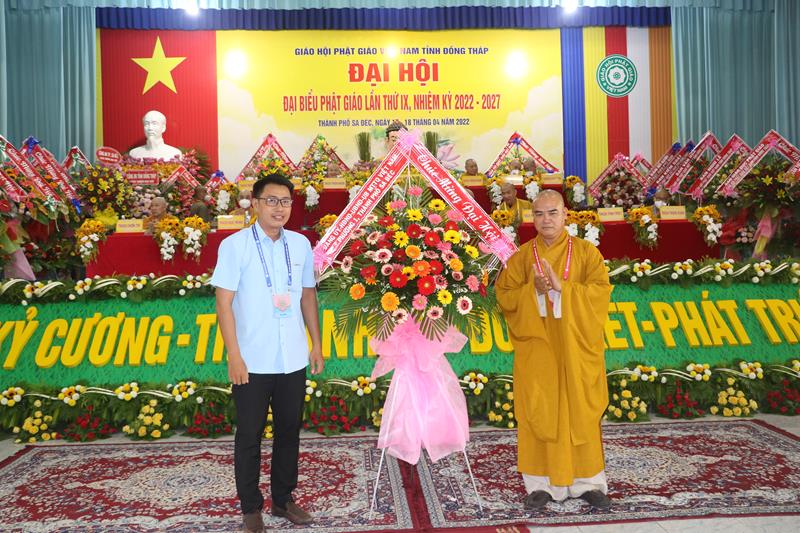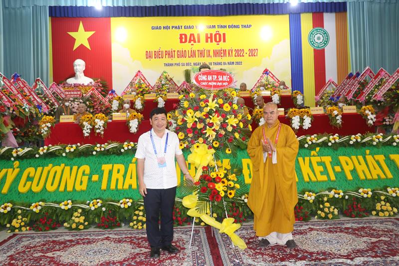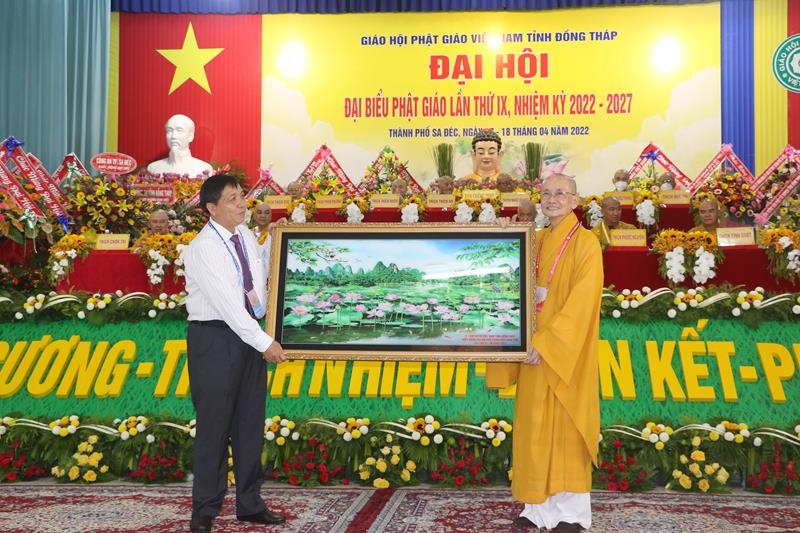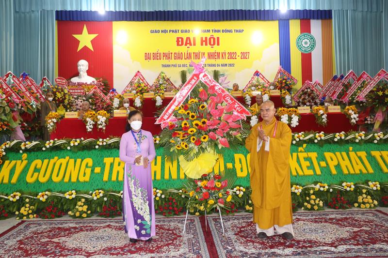 Phát biểu tại Đại hội, HT.Thích Thiện Nhơn – Chủ tịch HĐTS GHPGVN ngoài việc biểu dương và đánh giá cao những thành tựu Phật sự của của Ban Trị sự Phật giáo tỉnh Đồng Tháp đã làm được trong thời gian qua. Ban Trị sự GHPGVN tỉnh Đồng Tháp nhiệm kỳ 2022-2027 với cơ cấu nhân sự được trẻ hóa, tân Ban Trị sự sẽ tiếp bước các bậc tiền nhân, gách vác và làm tròn nhiệm vụ, sứ mạng mà Đại hội giao phó, tiếp tục phát huy vai trò lãnh đạo, đoàn kết tập hợp Tăng Ni và Phật tử tỉnh nhà phát huy truyền thống đoàn kết, yêu nước của Phật giáo Việt Nam, sinh hoạt tôn giáo đúng Pháp luật và đường hướng “Đạo pháp, Dân tộc và Chủ nghĩa Xã hội” mà Hiến chương của Giáo hội đã đề ra. Đồng thời, phát huy những giá trị tốt đẹp về văn hóa và đạo đức, bản chất từ bi và trí tuệ của đạo Phật, tích cực trong công tác từ thiện và hoạt động an sinh xã hội, các hoạt động phát triển kinh tế-xã hội, góp phần xây dựng  tỉnh nhà và xây dựng Giáo hội ngày càng vững mạnh, xứng đáng là thành viên tích cực của khối đại đoàn kết toàn dân tộc Việt Nam trong sự nghiệp xây dựng và bảo vệ Tổ quốc trong thời kỳ hội nhập, phát triển.