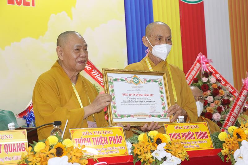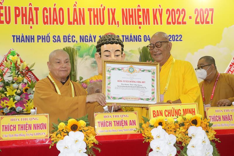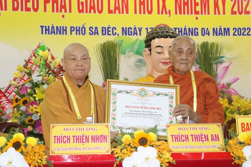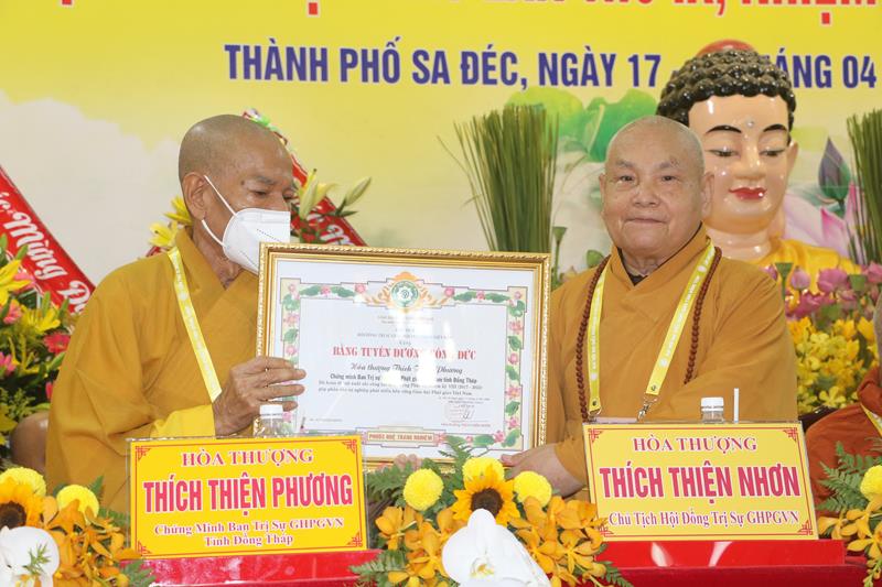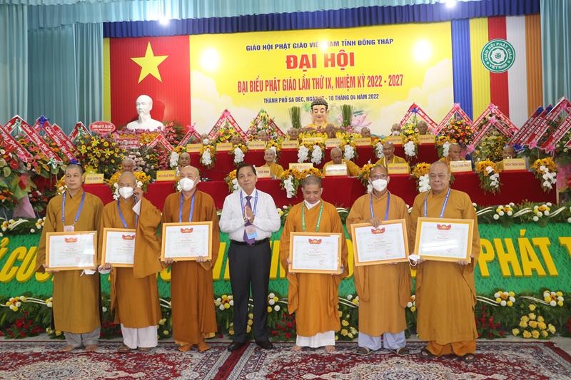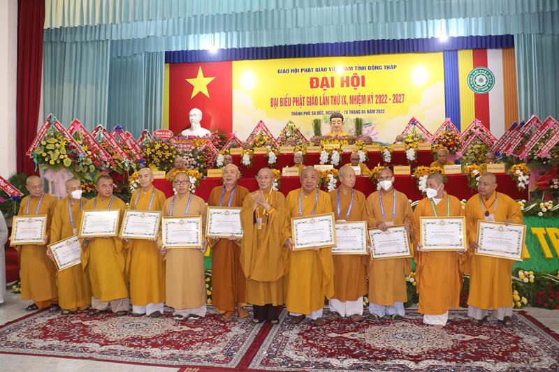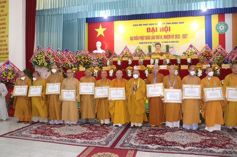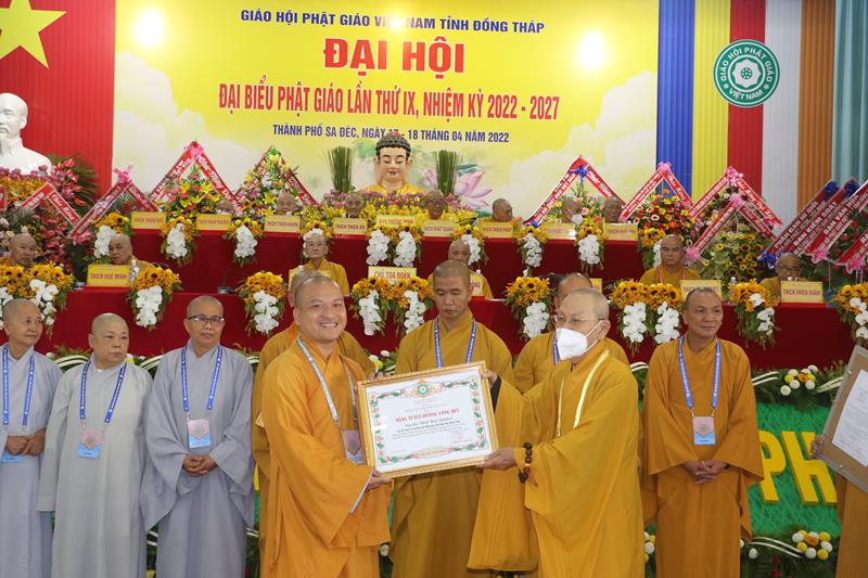 Ban Trị sự GHPGVN tỉnh Đồng Tháp trong nhiệm kỳ vừa qua, với những thành tựu sinh hoạt Phật sự đóng góp tích cực vào sự nghiệp ổn định và phát triển của Giáo hội. Vì vậy đã được Hội đồng Trị sự GHPGVN trao Bằng tuyên dương công đức cho tập thể Ban Trị sự và cá nhân Tăng Ni Phật giáo tỉnh Đồng Tháp. Đồng thời, Ủy ban Nhân dân, Ủy ban MTTQVN tỉnh Đồng Tháp cũng quyết định tặng bằng khen cho nhiều tập thể và các cá nhân hoàn thành xuất sắc những công tác hoạt động Phật sự trong nhiệm kỳ 2017 – 2022.