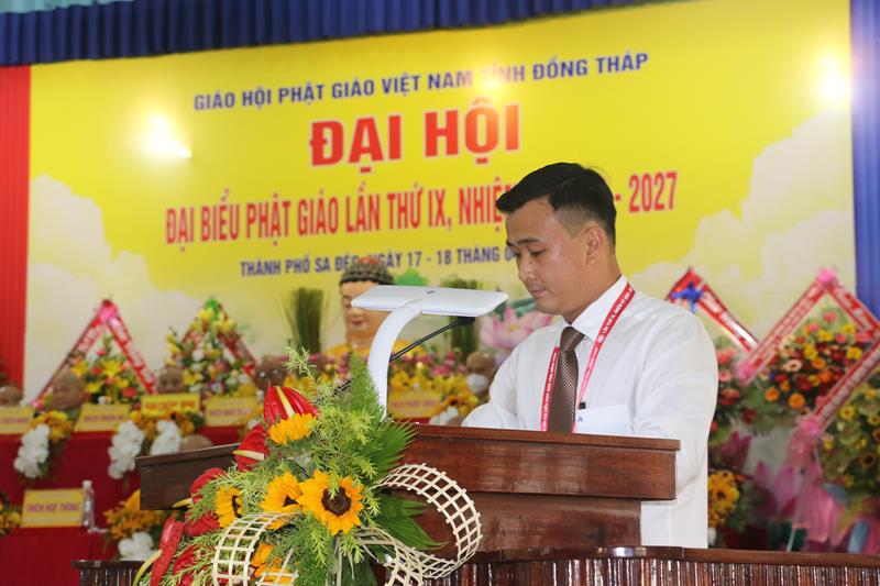 Thượng Toạ Thích Minh Sơn – Phó Chánh Thư ký Ban Trị Sự GHPGVN Tỉnh Đồng Tháp đã đọc báo cáo tổng kết công tác Phật sự nhiệm kỳ 2017-2022 của Ban Trị sự GHPGVN tỉnh. Theo đó, Phật giáo tỉnh Đồng Tháp với số lượng cơ sở tôn giáo là 151 cơ sở tự viện; 1197 Tăng Ni, với số lượng 650.000 tín đồ Phật tử quy y và có tín ngưỡng Phật giáo. Nhiệm kỳ 2017 – 2022 của GHPG Việt Nam tỉnh Đồng Tháp trong thời đại công nghiệp 4.0 và hội nhập sâu rộng toàn cầu, có rất nhiều mặt thuận lợi cho sự phát triển của Giáo hội.