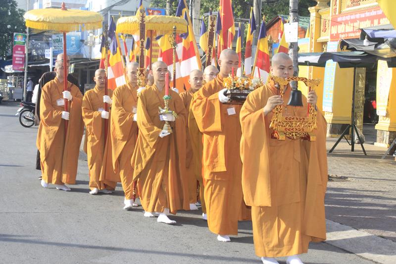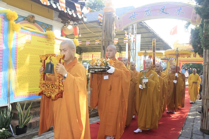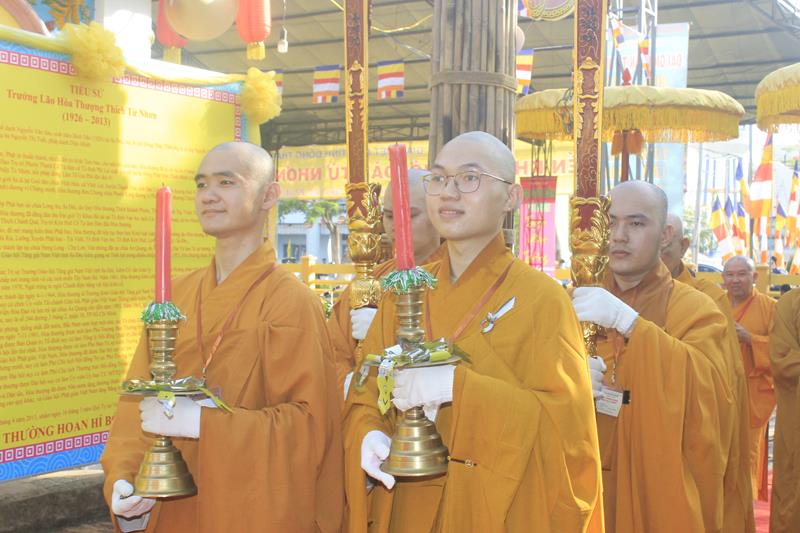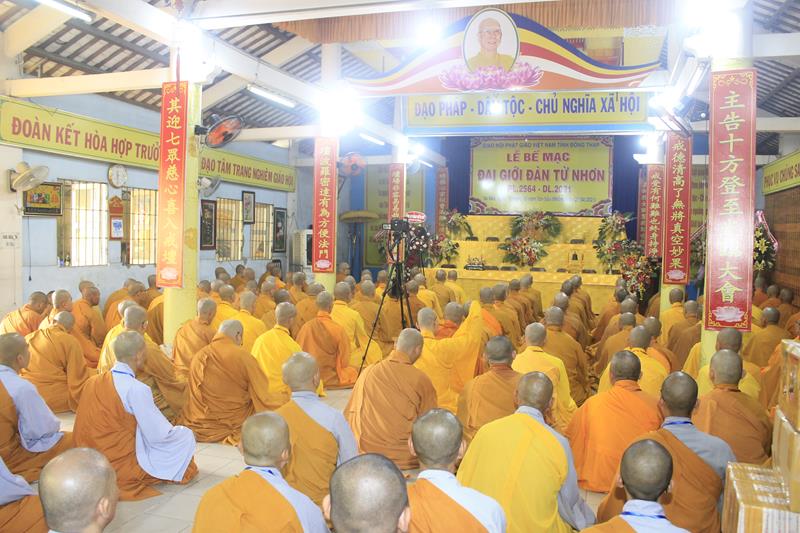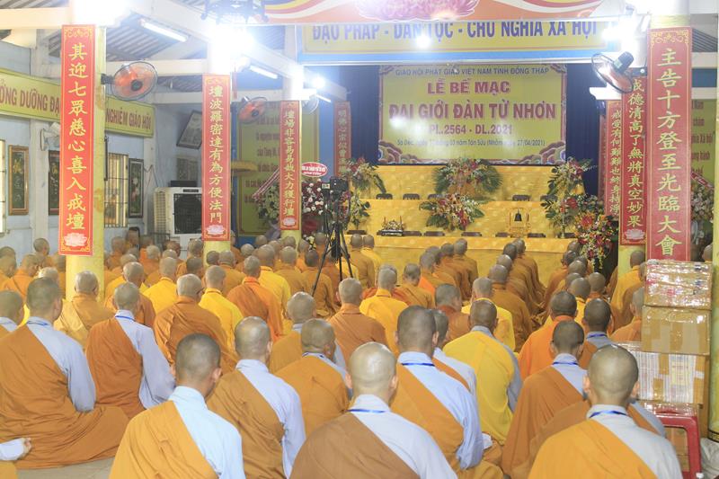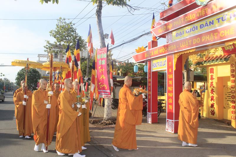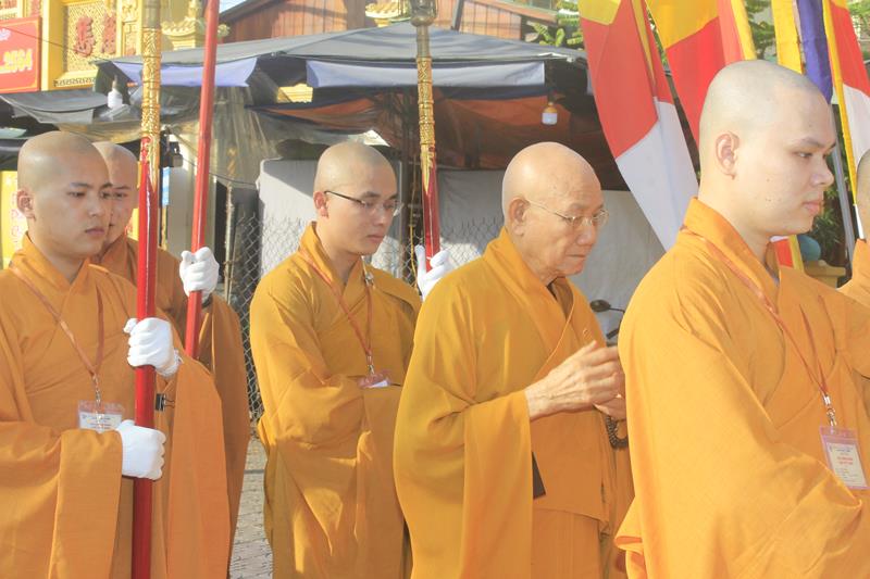 Cung đón Hòa thượng Tuyên luật sư có: HT.Thích Chơn Minh – Ủy viên HĐTS, Trưởng Ban GHPGVN tỉnh Đồng Tháp, Trưởng BTC; TT.Thích Chơn Trí, Phó BTS GHPGVN tỉnh, cùng 255 giới tử.