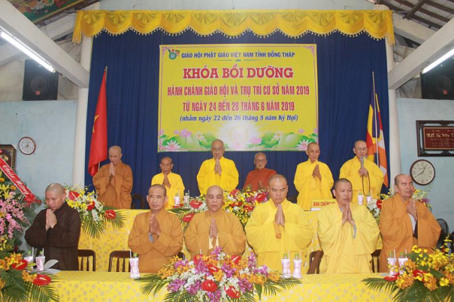 Sáng ngày 24/6/2019 (nhằm 22/5/ Kỷ Hợi), Ban trị sự GHPGVN tỉnh Đồng Tháp trang nghiêm lễ khai mạc Khóa Bồi dưỡng Hành chánh giáo hội và trụ trì cơ sở năm 2019, tại chùa Phước Hưng (Phường 1, Thành phố Sa Đéc).