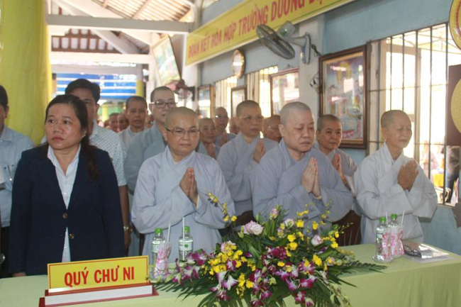 Quang lâm chứng minh tham dự: HT. Thích Thiện An, HT. Thích Thiện Huệ, đồng Thành viên HĐCM. GHPGVN; Hòa thượng Thích Huệ Thông – Phó Tổng Thư ký kiêm Chánh Văn phòng 2 TƯ GHPGVN; HT. Thích Phước Thông, HT. Thích Thiện Phương, đồng Chứng minh BTS GHPGVN tỉnh Đồng Tháp; Hòa thượng Thích Chơn Minh, Ủy vên Hội đồng Trị sự, Trưởng Ban trị sự GHPGVN tỉnh Đồng Tháp, Trưởng ban Tổ chức; cùng chư Tôn đức Thường trực BTS GHPGVN tỉnh Đồng Tháp, chư Tôn đức trụ trì các tự viện trên địa bàn và chính quyền tỉnh Đồng Tháp, Tp. Sa Đéc, Phường 1 cũng về tham dự buổi lễ.