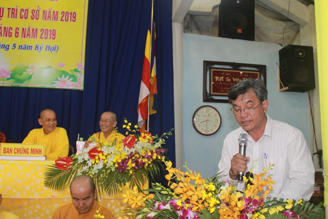 Ông Châu Văn Tài, Trưởng Ban tôn giáo tỉnh Đồng Tháp phát biểu chúc mừng khóa học được thành công…