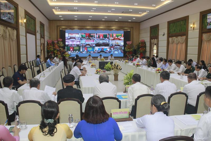 Theo đó, Ông Võ Hoàng Cương, Phó Chủ tịch TT UBMTTQVN tỉnh cho biết thêm về kết quả thực hiện công tác mặt trận qua các thời kỳ, đã phát huy truyền thống của hoạt động thiết thực về các công trình xây dựng cầu đường, nhà đoàn kết, hỗ trợ các sinh viên, học sinh nghèo xuất sắc trong việt học; các thành viên Mặt trận đã hướng dẫn xây dựng nhiều công trình cho người ngheo trong 12 huyện thị thành phố trong tỉnh. Hưởng ứng thi đua phong trào yêu nước, kỷ niệm 90 năm Ngày thành lập Mặt trận Dân tộc Thống nhất Việt Nam; thực hiện tốt về phòng chống dịch covid -19, an sinh xã hội trong đó có sự lãnh đạo thiết thực của mặt trận các câp, tham gia về công tác từ thiện có tôn giáo, danh nghiệp và nhân dân quần chúng tham gia.v.v…
