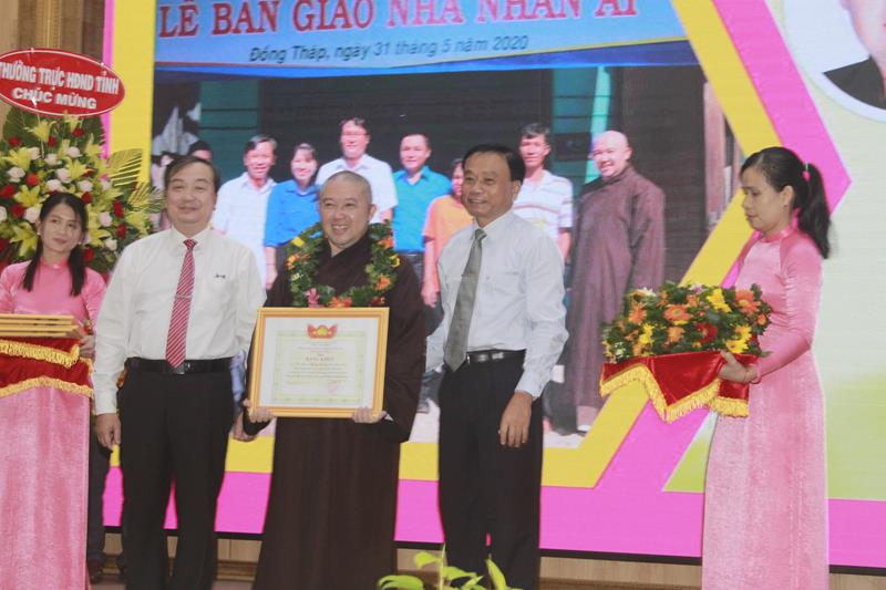 Thích Huệ Minh, Phó Ban trị sự GHPGVN tỉnh Đồng Tháp; Đại Đức Thích Chơn Trí, Phó Ban trị sự GHPGVN tỉnh Đồng Tháp, Trưởng Ban trị sự GHPGVN Thành phố Sa Đéc; TT. Thích Thiện Quý, Trụ trì chùa Tâm Thành, huyện Tam Nông vinh dự nhận đươc bằng khen cao quý này.