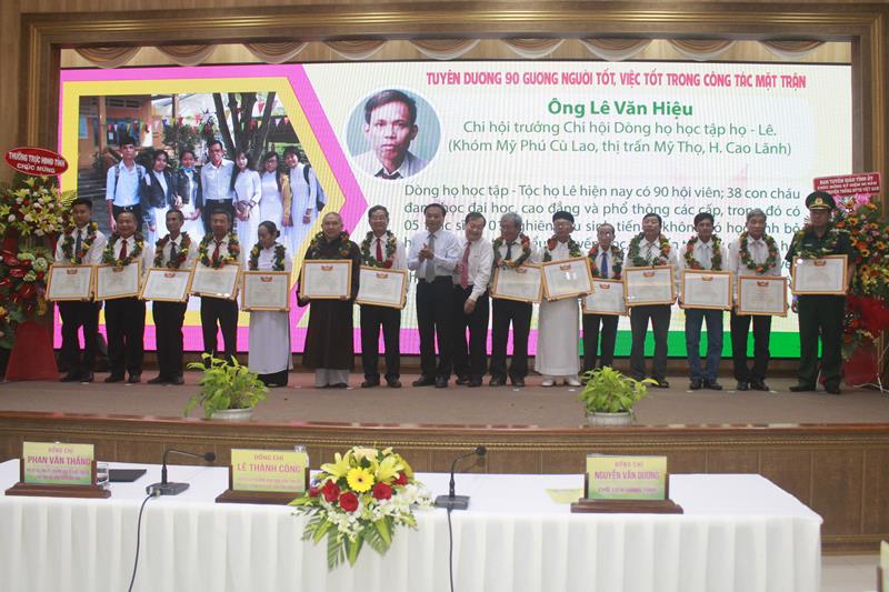 Buổi lễ có sự tham dự của Phó Bí thư tỉnh ủy, Chủ tịch HĐND Đồng Tháp Nguyễn Văn Thăng; ông Nguyễn Văn Dương, Chủ tịch UBND tỉnh, ông Lê Thành Công, Trưởng Ban Dân VậN, Chủ tịch UB MTTQVN tỉnh Đồng Tháp; các vị lãnh đạo, nguyên lãnh đạo; đại diện lãnh đạo, thành viên Mặt trận; các vị lão thành cách mạng; đại diện 90 đại biểu tiêu biểu của gương người tốt – việc tốt trong toàn tỉnh và 13 điều cầu truyền hình trong tỉnh Đồng tháp tham dự và xem trực tuyến.