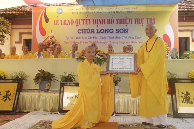 Xét đạo hạnh và oai nghi, BTS GHPGVN tỉnh và các cơ quan ban ngành đoàn thể tỉnh Đồng Tháp quyết định bổ nhiệm trụ trì chùa Long Sơn cho ĐĐ.Thích Minh Phước.