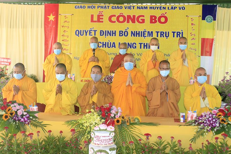 Thừa uỷ nhiệm của Thường trực BTS GHPGVN tỉnh Đồng Tháp, TT. Thích Minh Sơn – Phó Thư ký kiêm Chánh Văn phòng Ban Trị sự GHPGVN tỉnh đọc quyết định bổ nhiệm Đại đức Thích Thiện Kiêm (thế danh Huỳnh Minh Kiêm, sinh năm 1980) giữ nhiệm vụ trụ trì chùa Long Thiền, xã Long Hưng B, huyện Lấp Vò, tỉnh Đồng Tháp.
