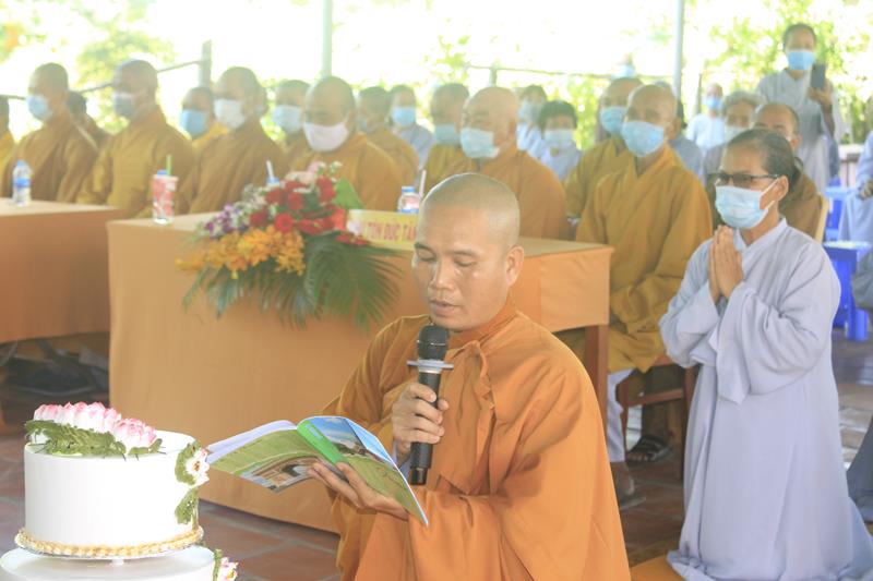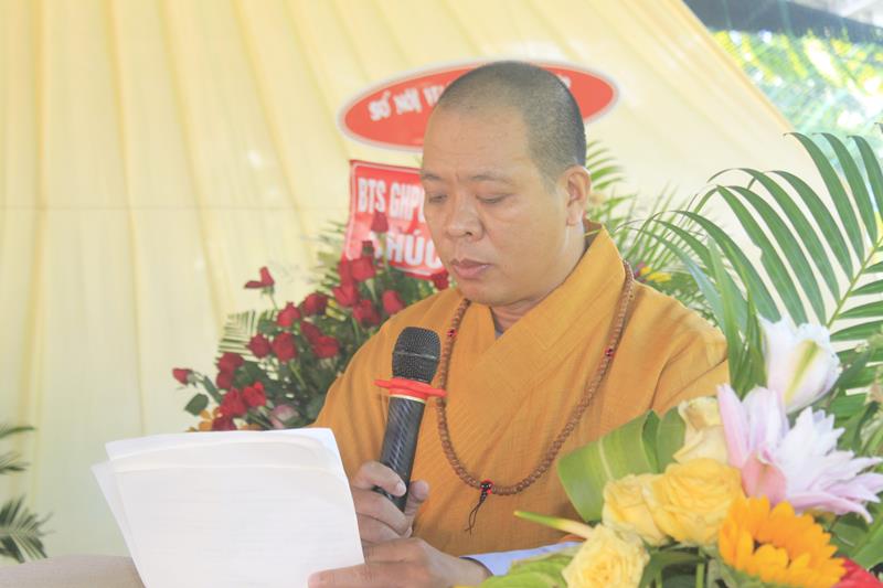 Thượng tọa Thích Huệ Thủ – Trưởng BTC tuyên đọc nội dung khai mạc buổi lễ bổ nhiệm trụ trì chùa Long Thiền.