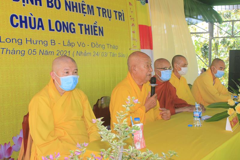 Đồng thời, Ngài mong rằng Đại đức luôn ý thức trọng trách của mình mà hộ trì Tam bảo tại chùa Long Thiền ngày thêm phát triển trong tinh thần hoà hợp, không ngừng rèn luyện để tăng trưởng được đạo hạnh hơn nữa, xứng đáng là sự kỳ vọng của lãnh đạo Giáo hội tỉnh nhà.