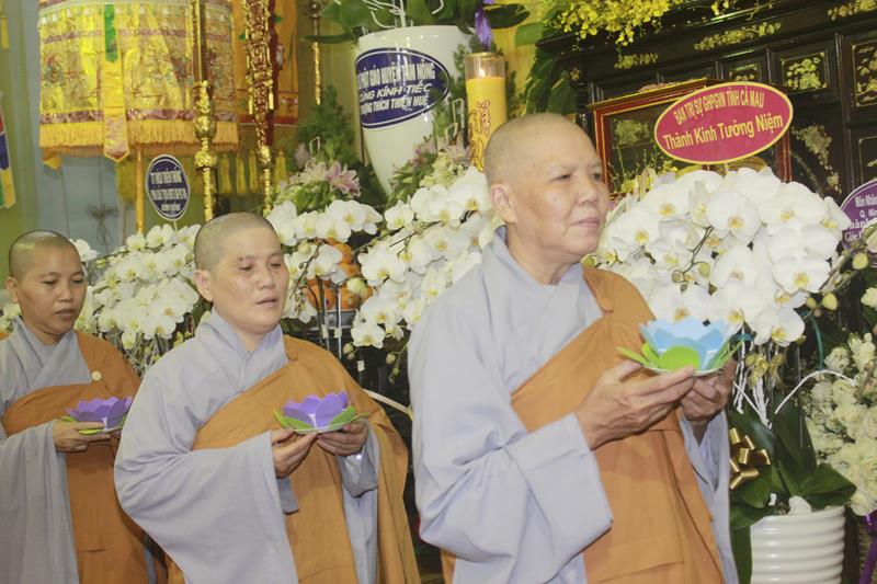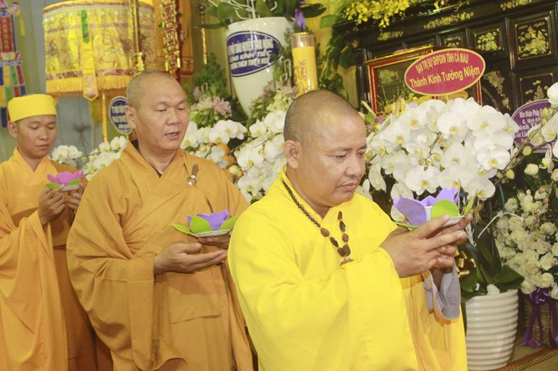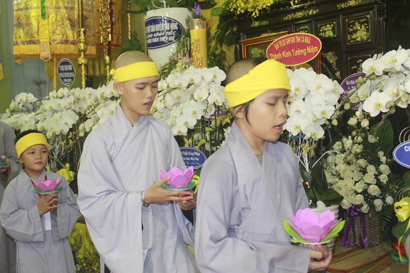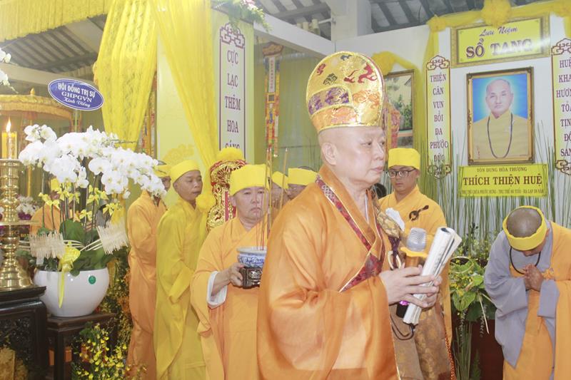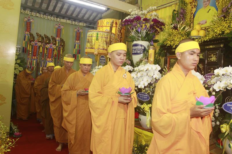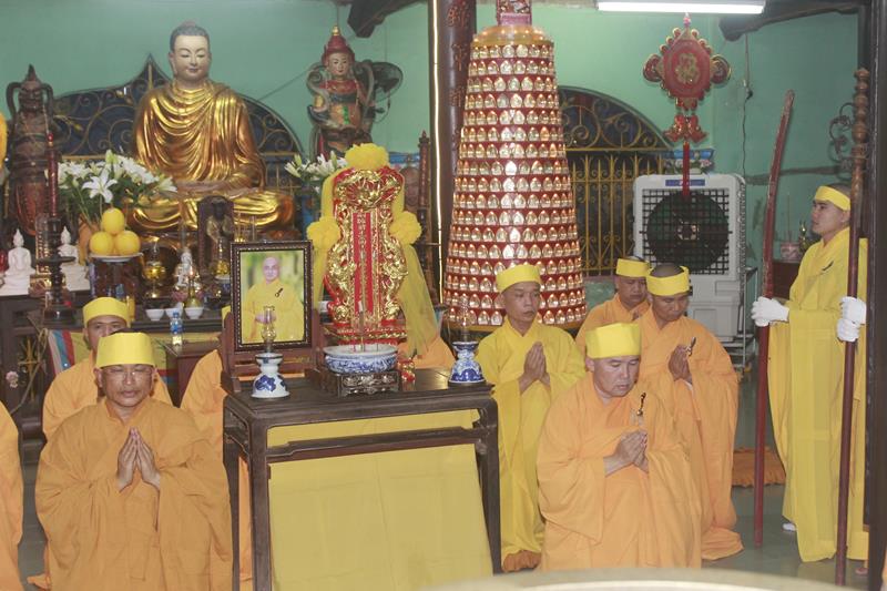 Sau lễ bố-tát HT. Thích Thiện Phương – Chứng minh Ban trị sự GHPGVN tỉnh Đồng Tháp cùng Chư tôn đức Ban trị sự GHPGVN tỉnh, chư Tôn đức môn đồ pháp quyến, quý thiện nam tín nữ Phật tử đối trước Giác linh đài dâng lên lời cảm niệm.