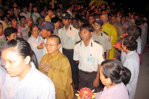 18h30 dân chúng tấp nập trở về chùa Quan Âm thính pháp. Không khí sôi nổi nhộn nhịp đông vui như ngày hội. Đại đức TS Thích Nhật Từ trở về từ TP.HCM đã có buổi pháp thoại thật ấn tượng với chủ đề “Quan Âm Diệu Thiện”. Giữa một biển người mênh mông, lời pháp của thầy như giọt nước cam lồ tưới vào vùng đất khô cằn của những người khát pháp. Với nụ cười hoan hỷ thân thương, thầy đã gieo hạt mầm tỉnh giác, từ bi vào tận từng trái tim của những người con Phật.