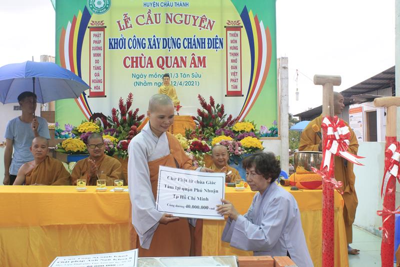 Phát biểu khai mạc tại buổi lễ, Đại đức Thích Thiện Pháp, Phó Ban trị sự GHPGVN huyện Châu Thành đã khái quát qua về lịch sử hình thành và phát triển của chùa Quan Âm qua các thời kỳ hình thành tại vùng đất huyện Châu Thành.