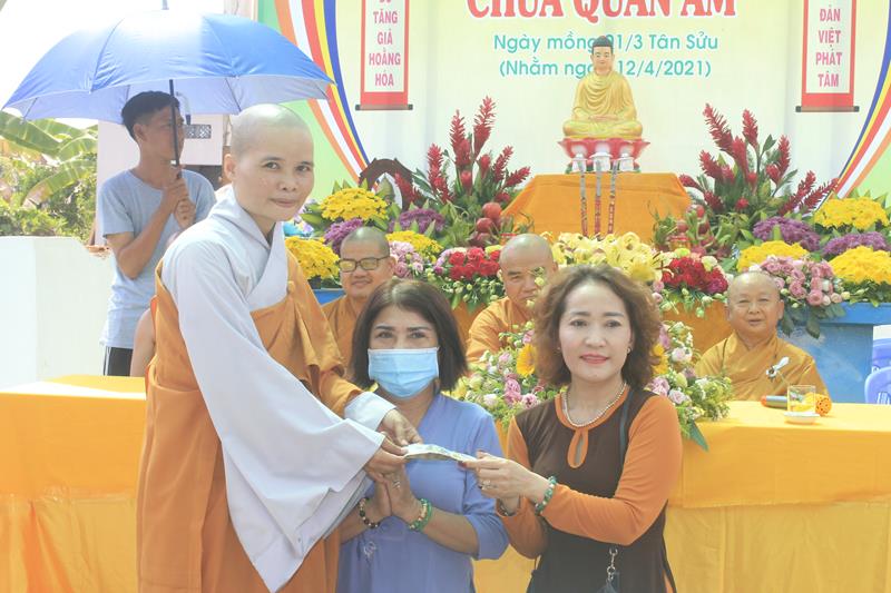 Nhân dịp này, Đại Đức Thích Thiện Pháp đã nêu danh và biểu dương các nhà hảo tâm, các mạnh thường quân, các Phật tử đã đóng góp tịnh tài cho việc phúc này trong những ngày vận động xây dựng vừa qua.