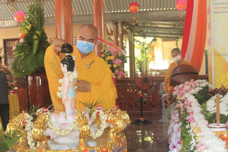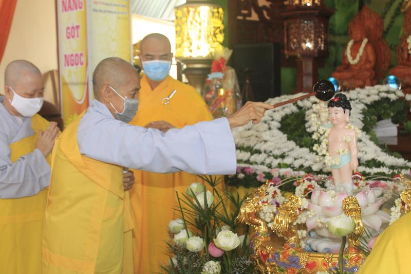 Hòa Thượng Thích Huệ Minh cùng toàn thể đại chúng thành kính đảnh lễ Tam Bảo và cử hành nghi thức mộc dục.