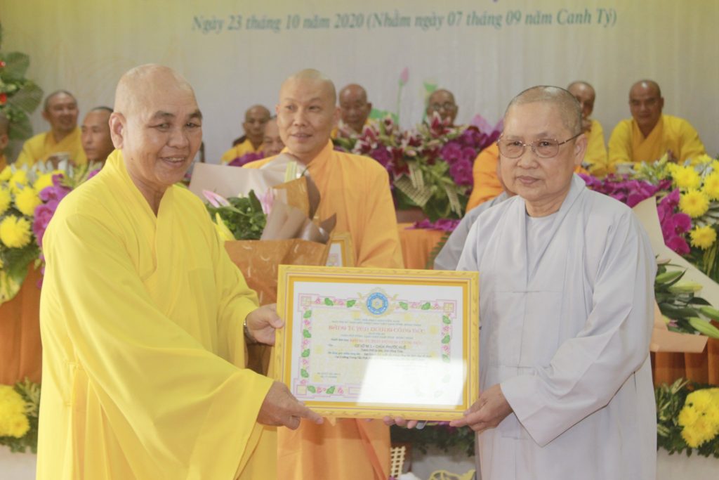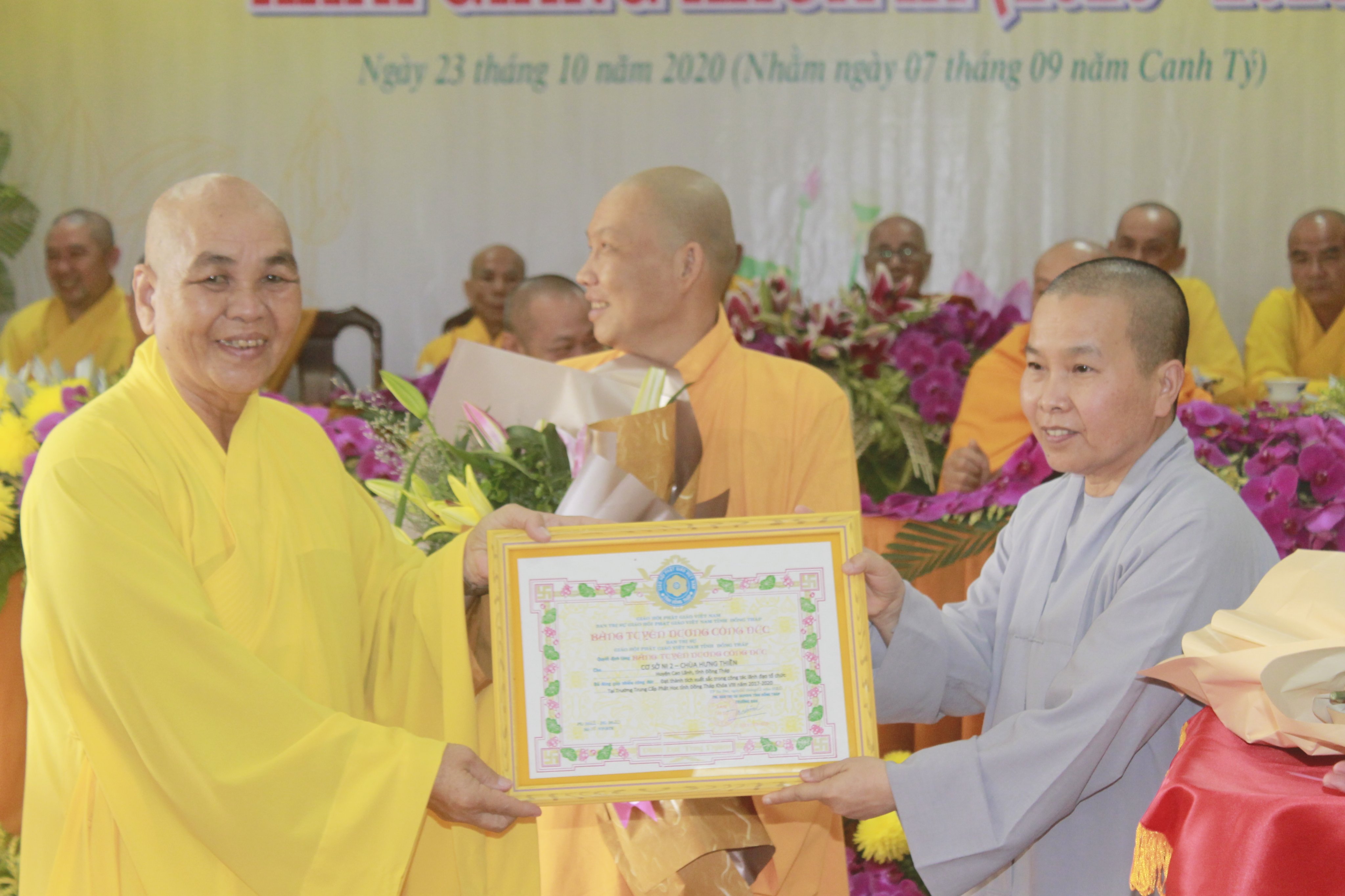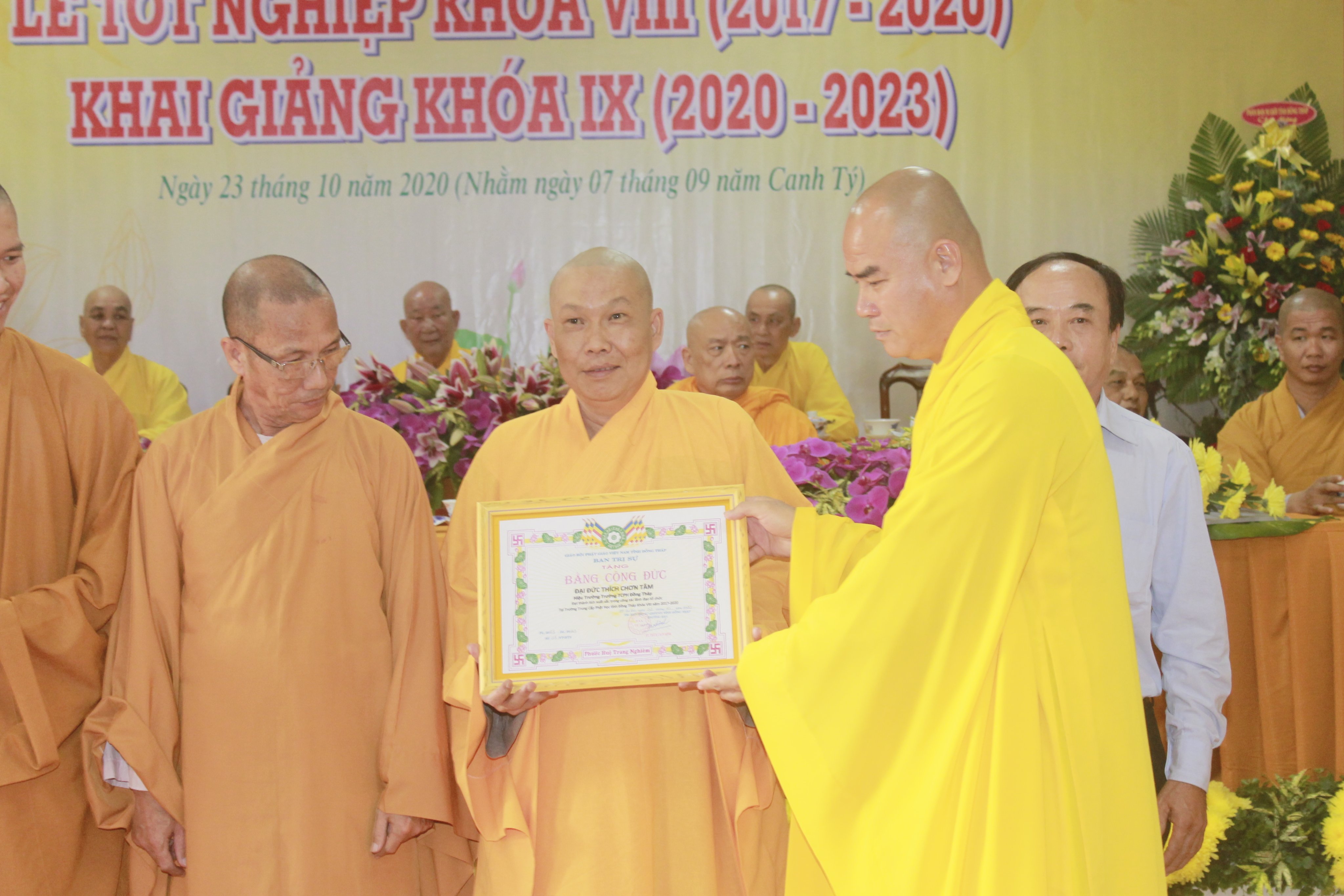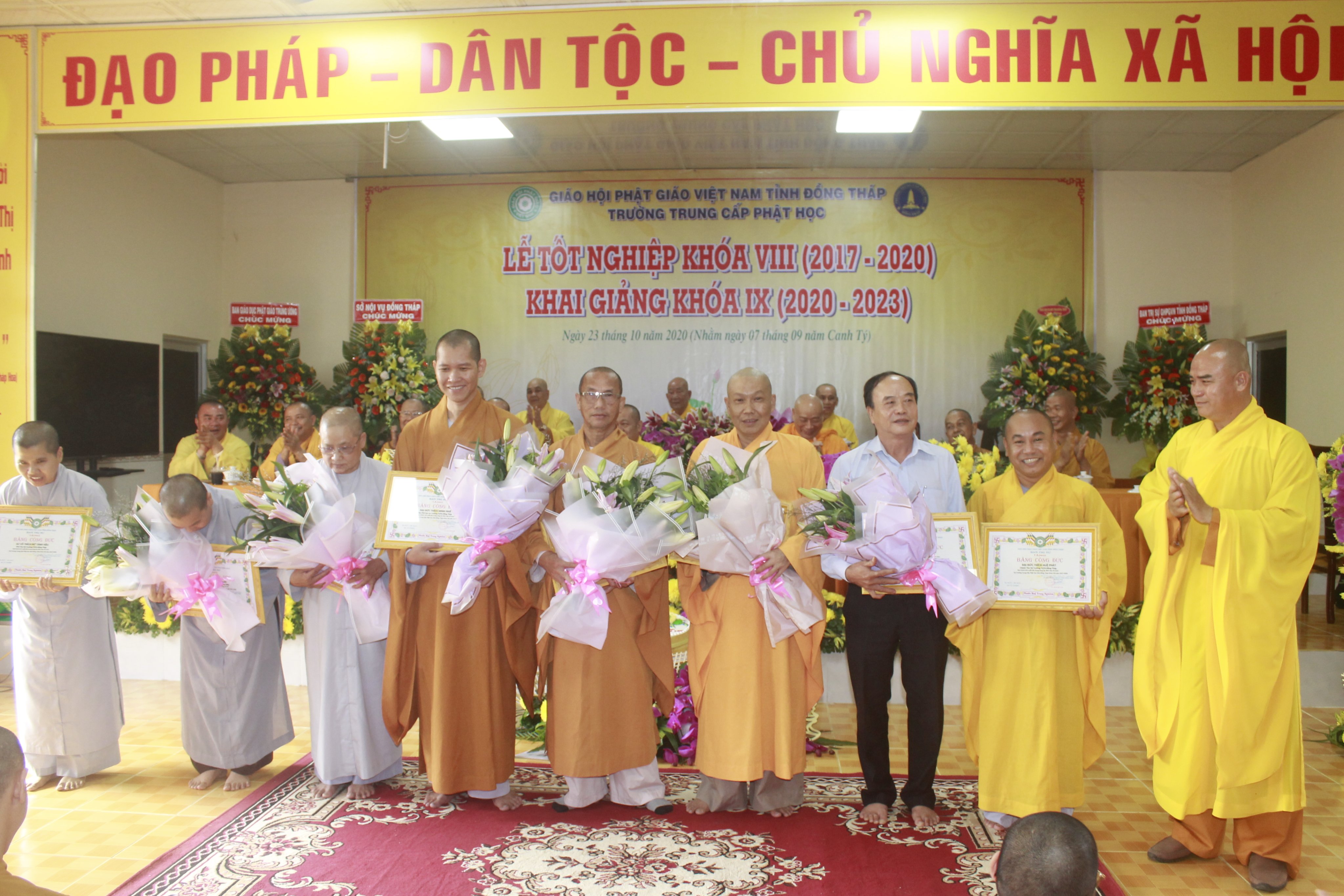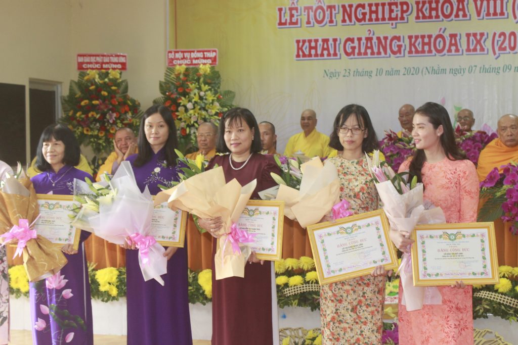 Dịp này, Ban Trị sự GHPGVN tỉnh Đồng Tháp đã Tuyên dương công đức của Ban Giám hiệu nhà trường về những thành tựu trong công tác đào tạo Tăng, Ni, và Phật tử ngoại hộ đã đóng góp vào nguồn nhân lực cho Giáo hội.