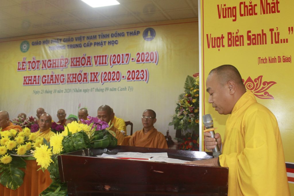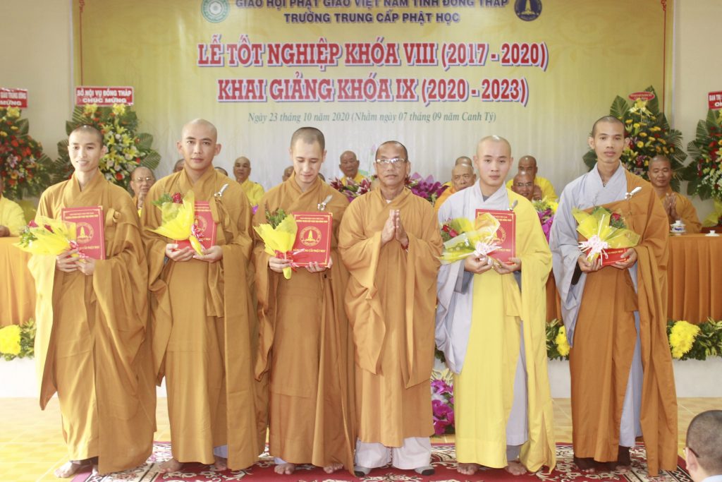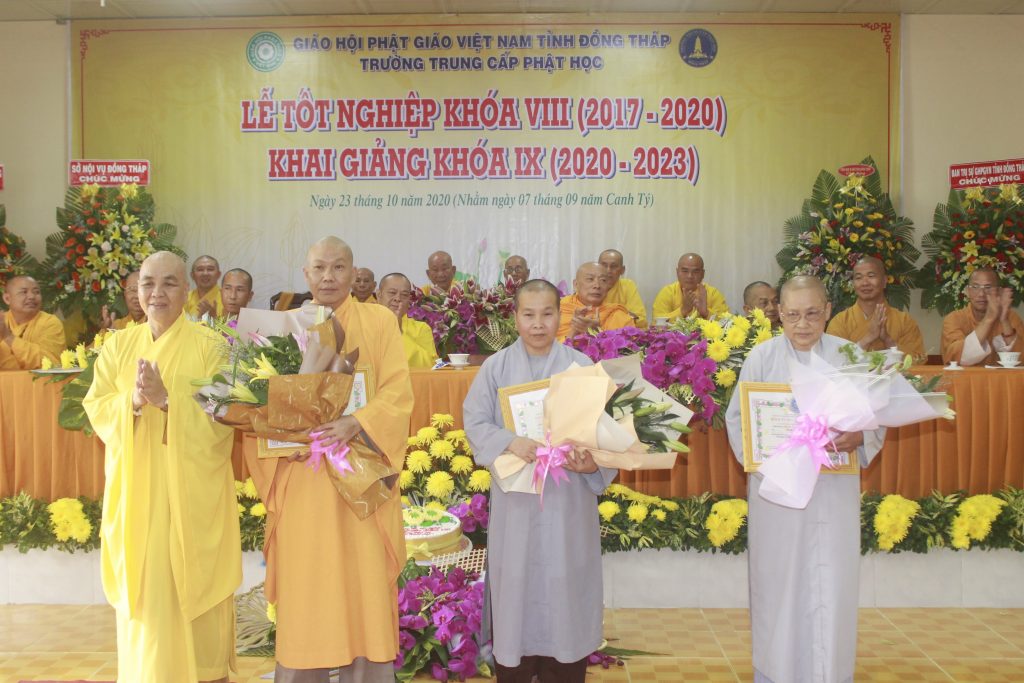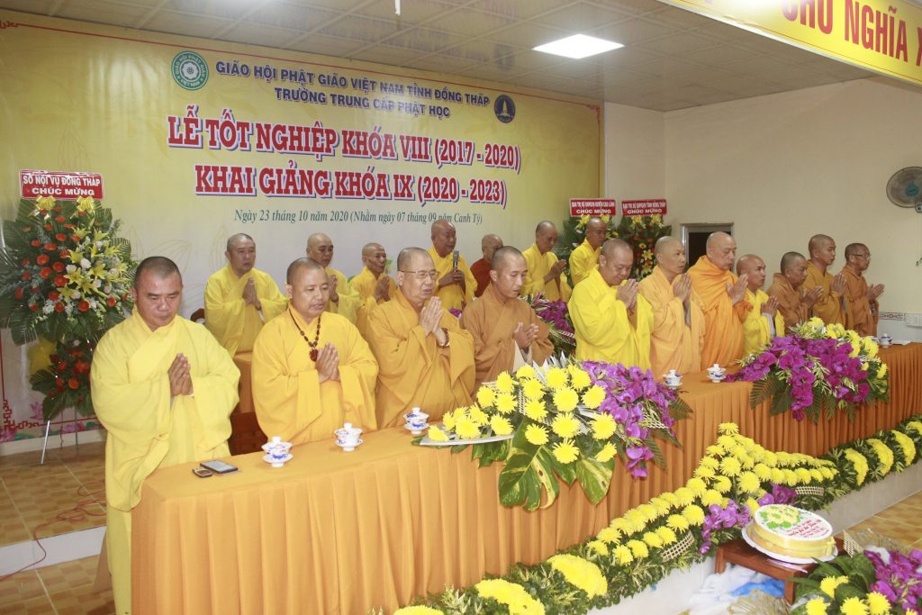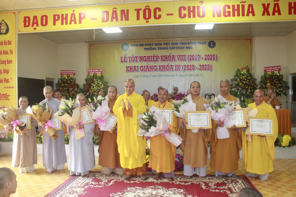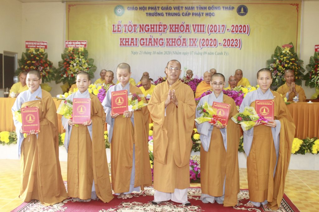 Sáng  nay, ngày 23/10/2020 (nhằm ngày 7/9 năm Canh Tý), tại trường Trung cấp Phật học (TCPH) Đồng Tháp – chùa Thanh Lương ( xã An Bình, huyện Cao Lãnh, tỉnh Đồng Tháp), đã long trọng tổ chức lễ tốt nghiệp, cấp văn bằng cho Tăng Ni sinh khóa VIII (2018-2020) và khai giảng khóa IX (2020 – 2023).