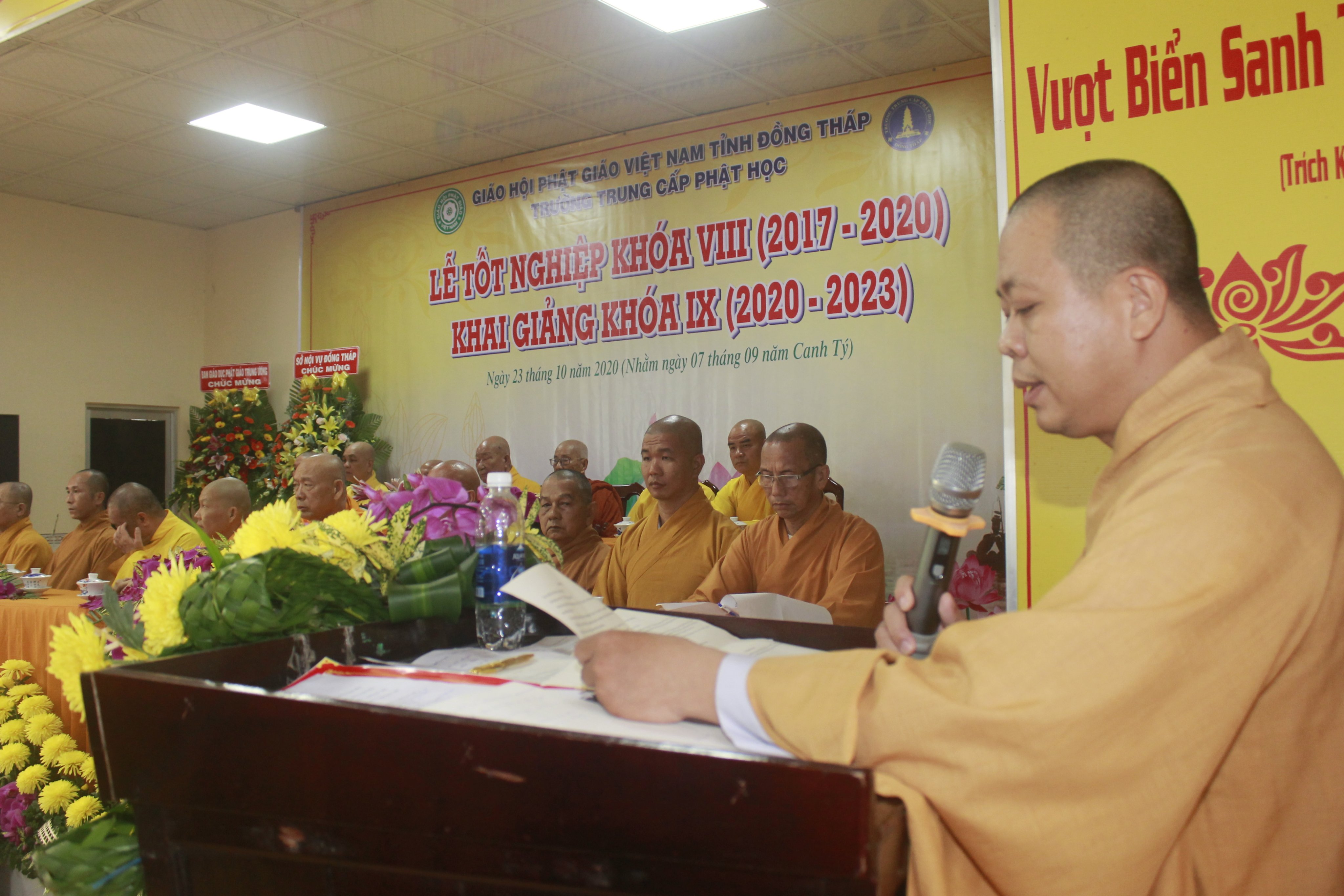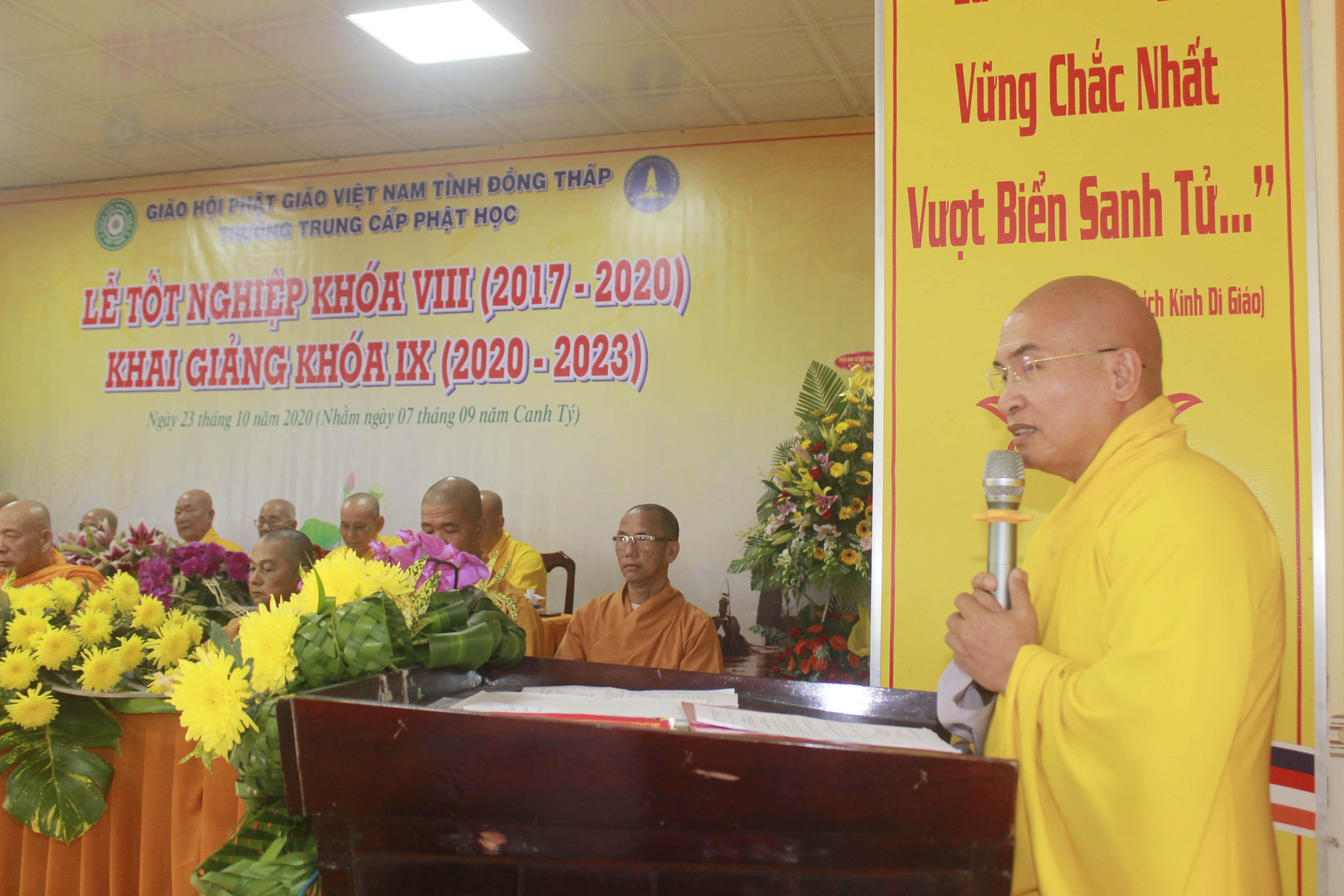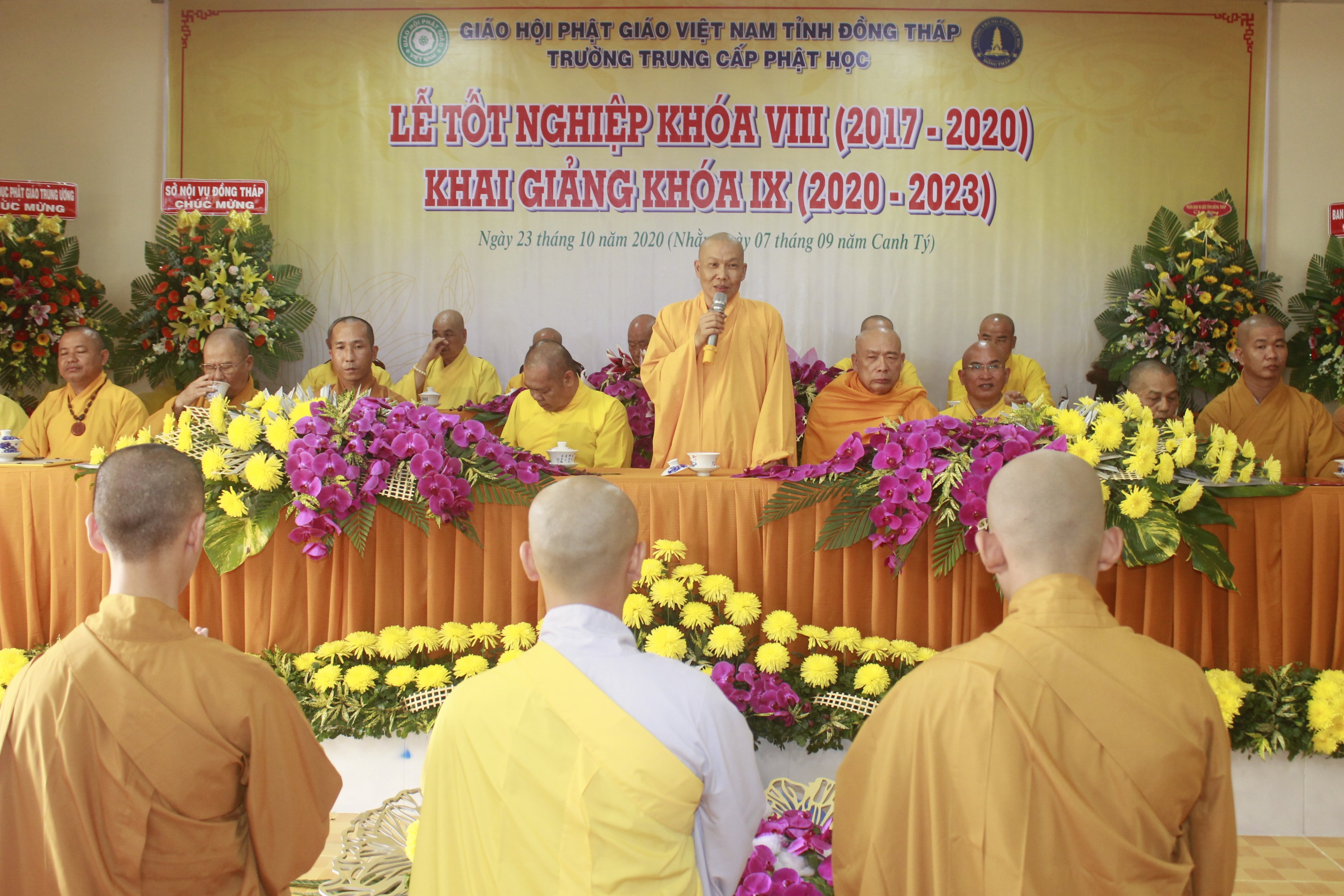 Sáng  nay, ngày 23/10/2020 (nhằm ngày 7/9 năm Canh Tý), tại trường Trung cấp Phật học (TCPH) Đồng Tháp – chùa Thanh Lương ( xã An Bình, huyện Cao Lãnh, tỉnh Đồng Tháp), đã long trọng tổ chức lễ tốt nghiệp, cấp văn bằng cho Tăng Ni sinh khóa VIII (2018-2020) và khai giảng khóa IX (2020 – 2023).