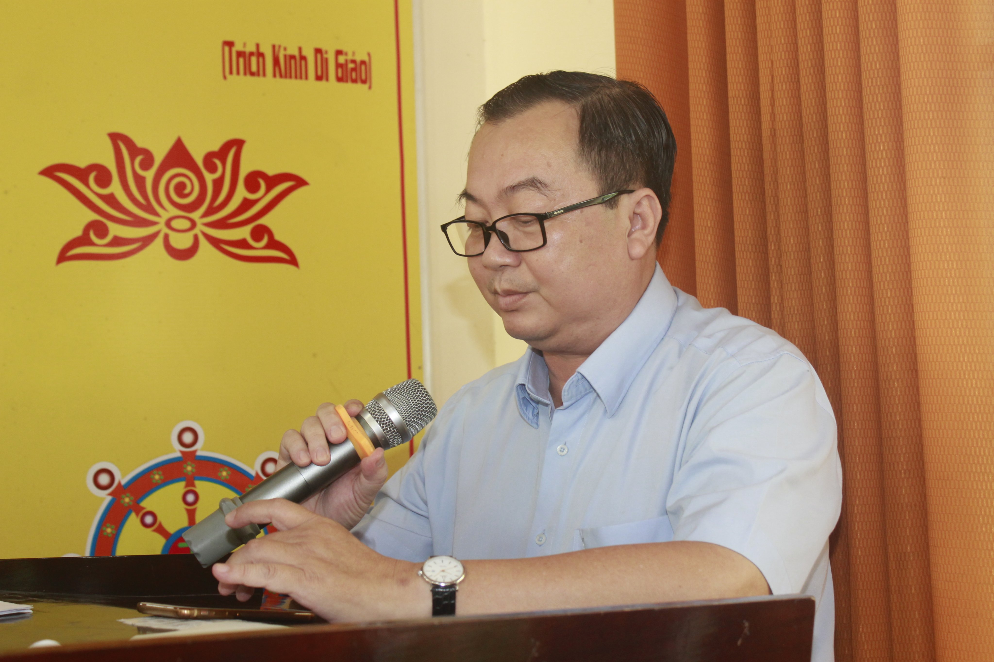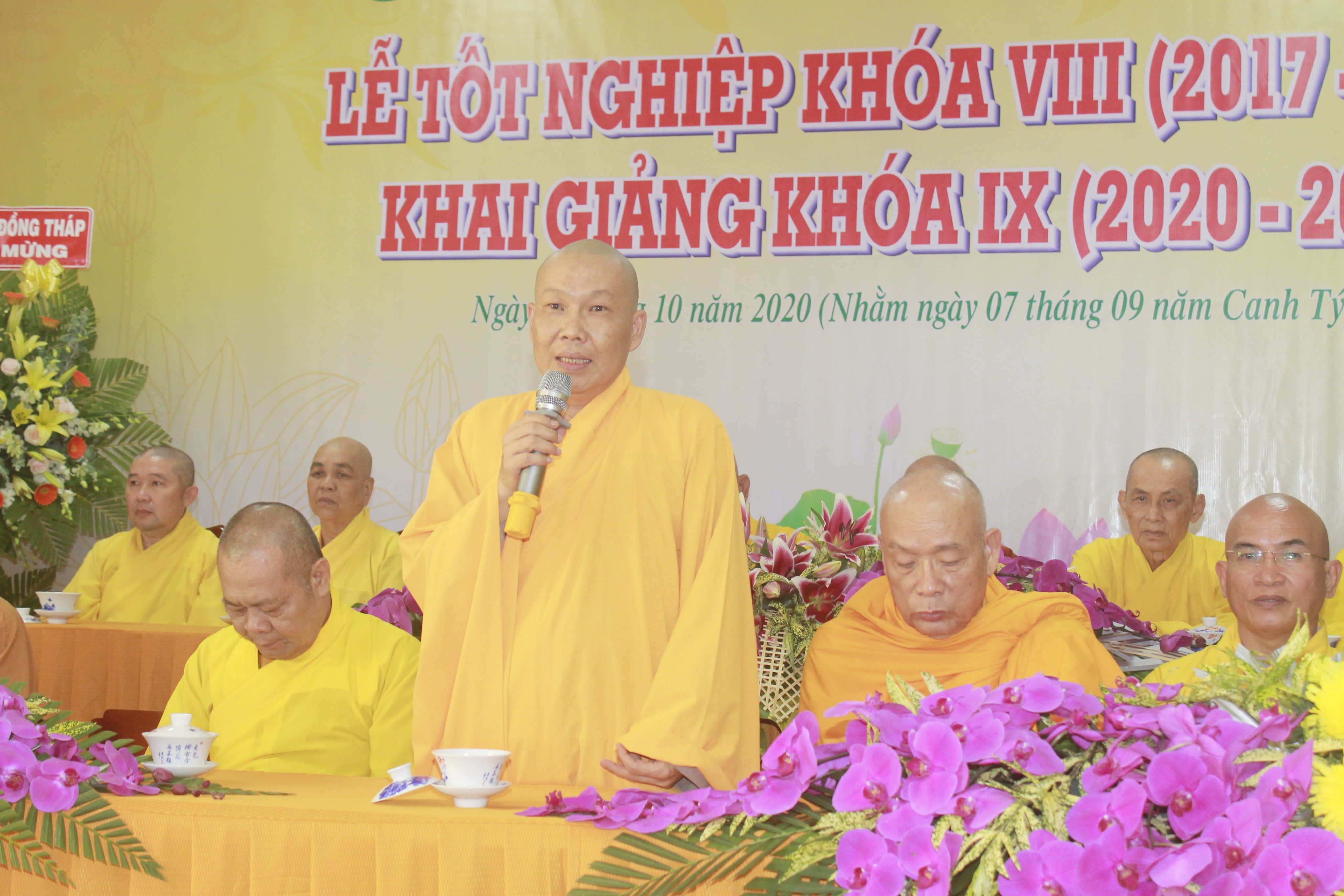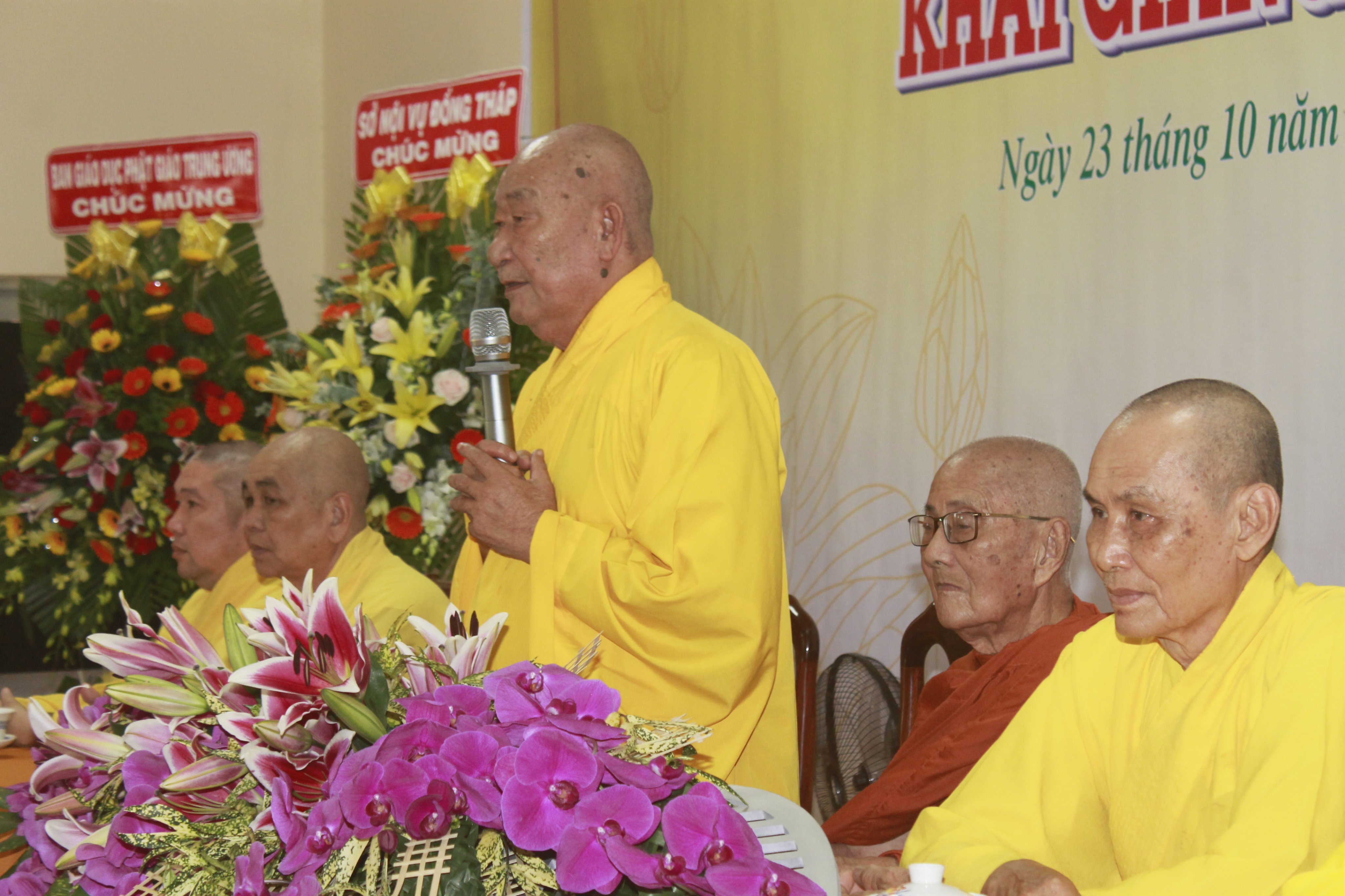 Thích Minh Thuần – Phó Hiệu trưởng Trường Trung cấp Phật học Đồng Tháp phát biểu khai mạc.