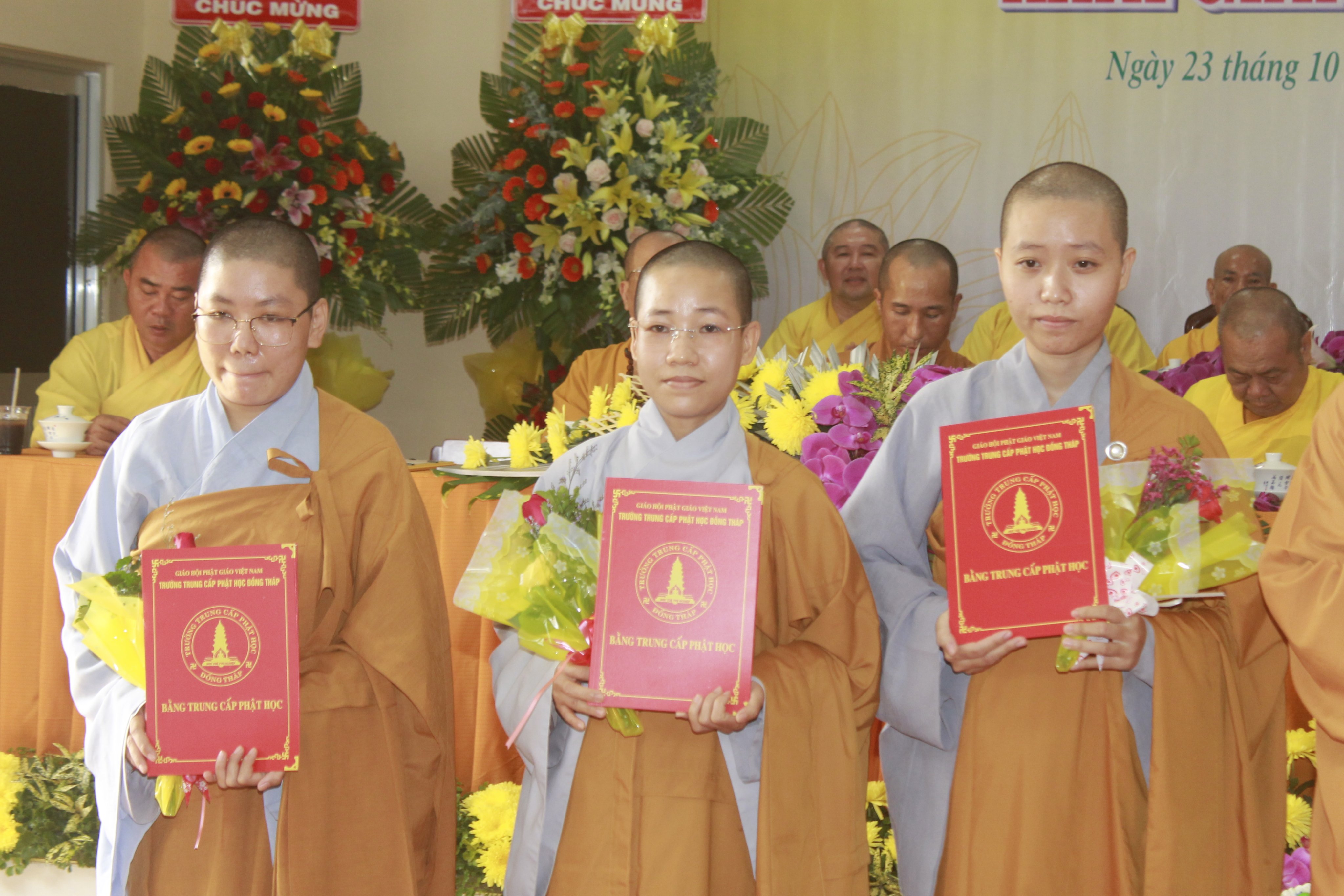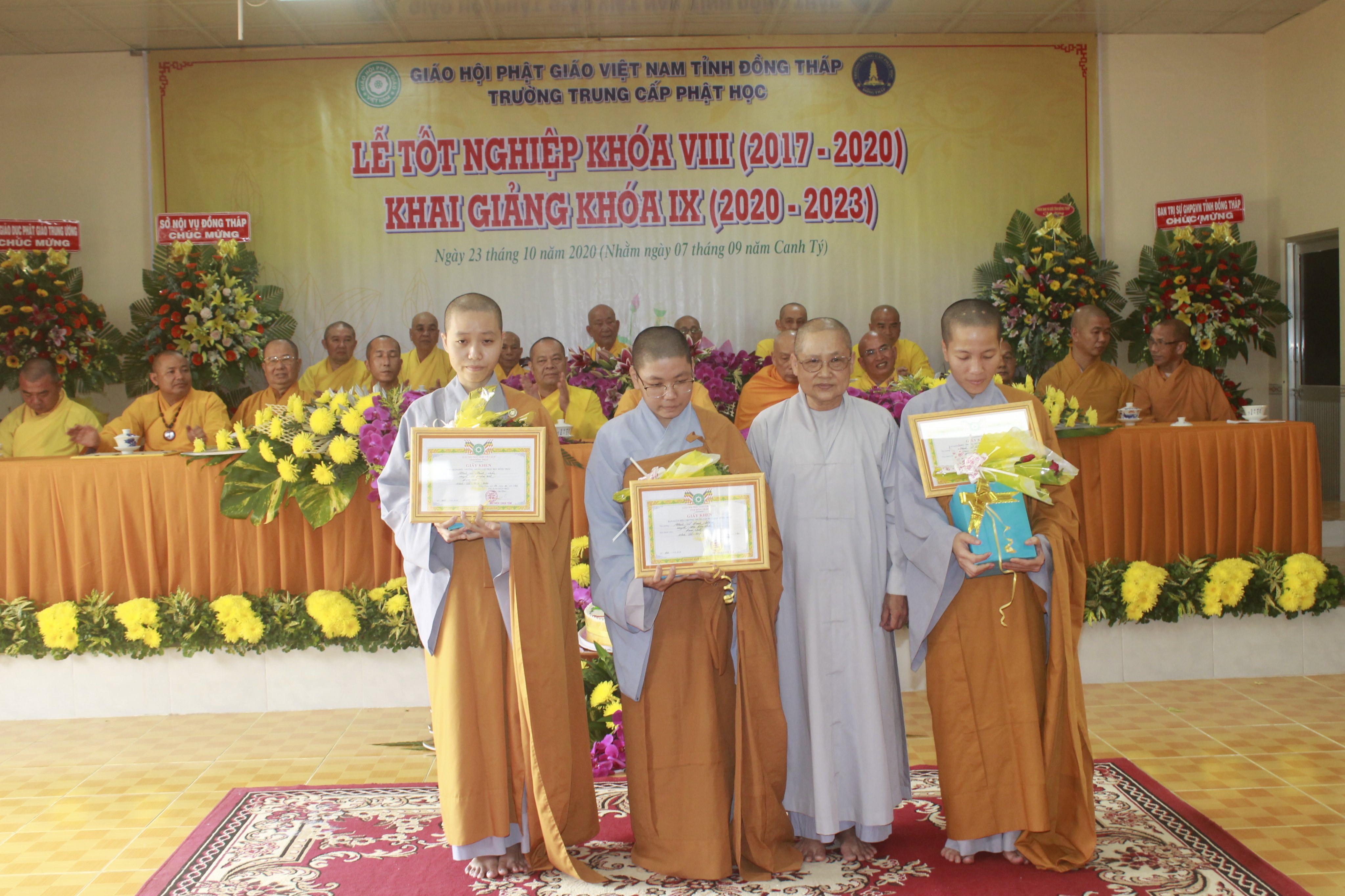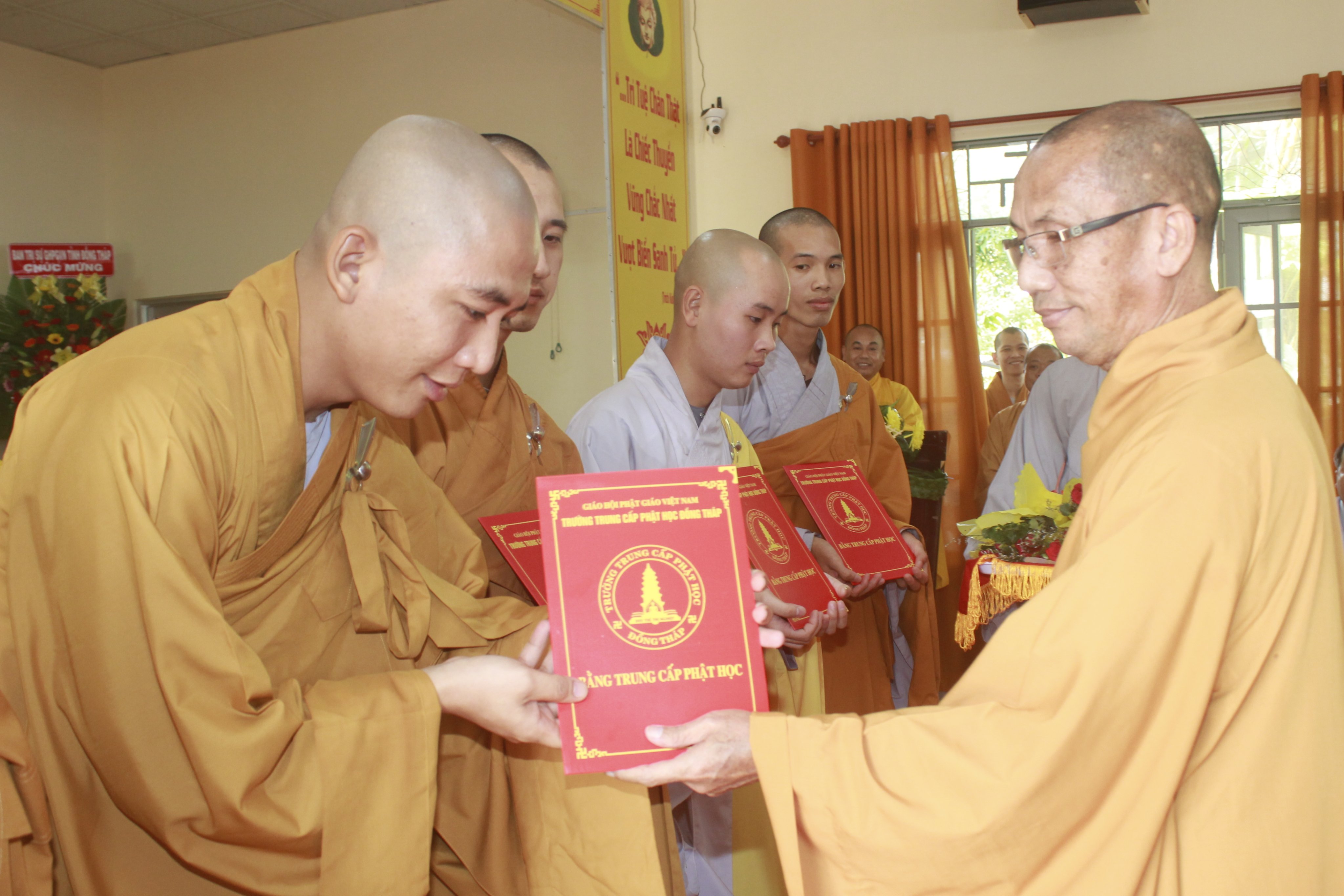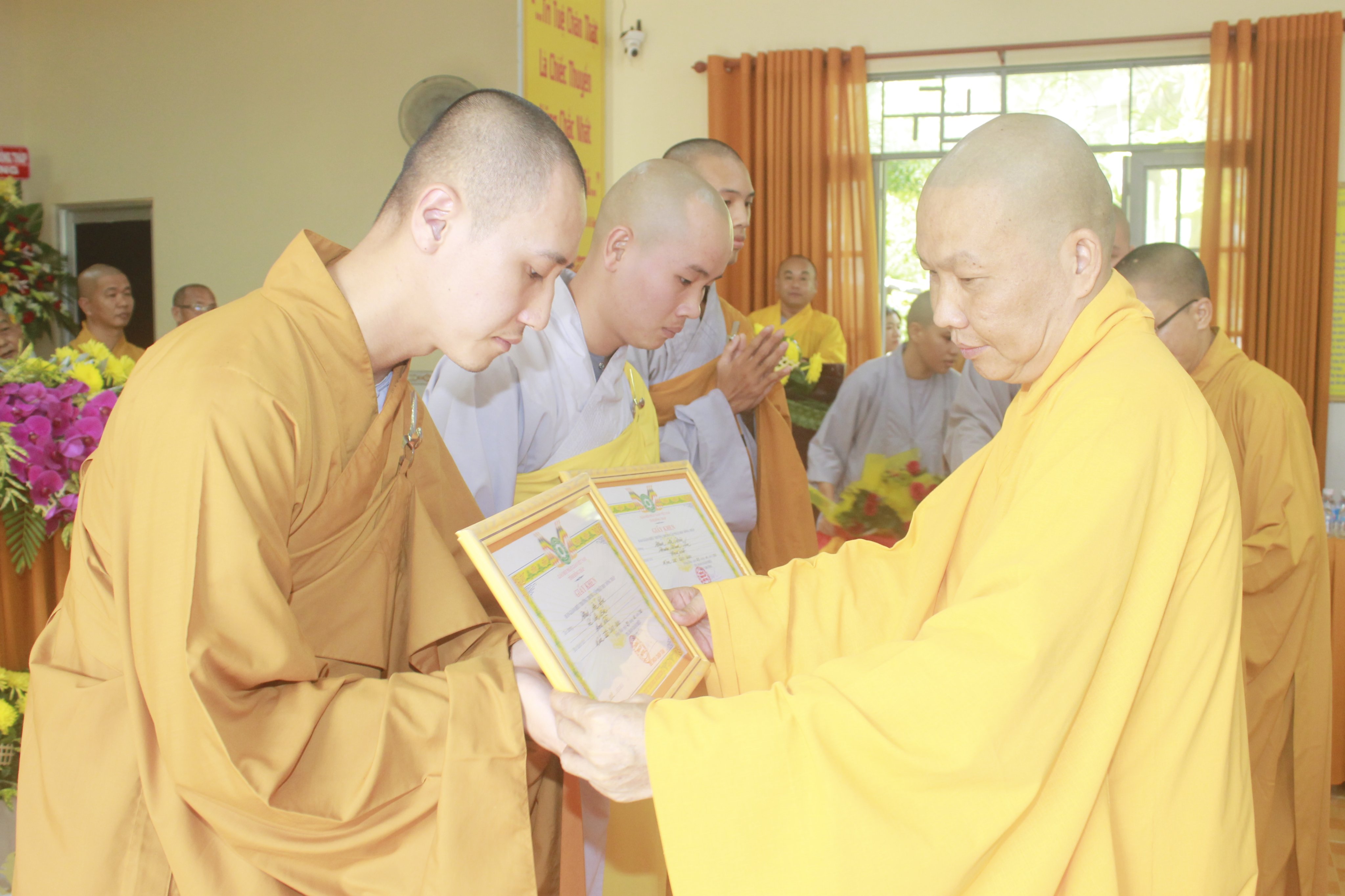 Ban giám hiệu đã trao văn bằng Tốt nghiệp Trung cấp Phật học đến các Tăng Ni sinh khóa VIII và Ban Giám hiệu nhà trường đã trao các phần thưởng, học bổng đến Tăng Ni sinh có đạo hạnh và thành tích học tập xuất sắc trong năm học.