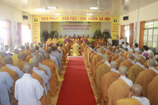 Căn cứ vào báo cáo cho biết, thời gian đào tạo của Lớp Trung cấp Phật học khóa VIII là ba năm, hiện có 221 vị đủ điều kiện tốt nghiệp và được nhận bằng Tốt nghiệp.