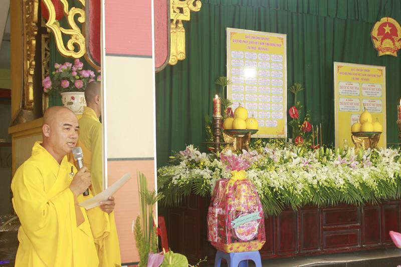 Tại buổi lễ, TT. Thích Tĩnh Triệt, Phó Trưởng BTS GHPGVN tỉnh Đồng Tháp phát biểu khai mạc cho biết: Phật giáo Đồng Tháp hình thành, phát triển đến nay hơn 35 năm, kể từ năm 1982, trải qua các thế hệ bậc tiền bối lãnh đạo các cấp Giáo hội.