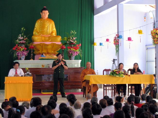Không khí buổi nói chuyện không khỏi không xúc động khi nghe kể về khí thế một thời của lớp lớp thanh niên ra trận giữ gìn và bảo vệ quê hương đất nước, trong đó có sự đóng góp không nhỏ của Phật giáo từ xưa đến nay. Ấn tượng nhất có lẽ là câu kết của Thiếu tướng “Chúng tôi đã thực hiện nghĩa vụ thiêng liêng đối với Tồ quốc là xã thân vì độc lập tự do và chúng tôi có được cuộc sống như bây giờ, tôi thấy mình có phước rất lớn. Tôi đã phấn đấu giữ gìn và phát triển cái phước này cùng với chư Tăng Ni, bà con Phật tử và những bạn bè đồng đội của mình tiếp tục cống hiến cho đất nước”.