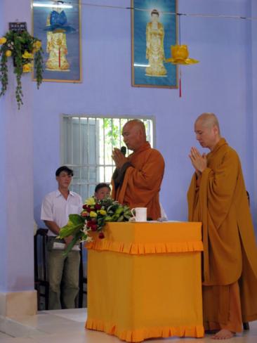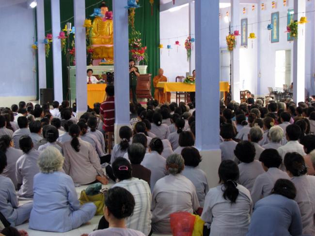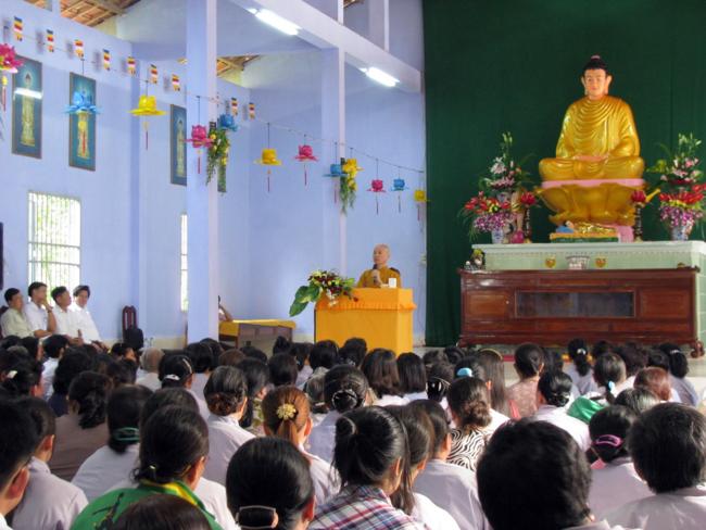Trong ngày 14/09, vào lúc 13h00, buổi nói chuyện chuyên đề về ĐẤT NƯỚC – DÂN TỘC & ĐẠO PHÁP do ĐĐ.Thích Giác Minh – Trụ trì chùa Phong Hòa đã mời người anh hùng lực lượng vũ trang nhân dân – Thiếu tướng Lê Mã Lương mà cũng là một phật tử có pháp danh là Nghiêm Phúc, được nhà chùa giới thiệu giao lưu cùng tất cả Chư Tăng ni, phật tử nhân dịp giỗ Tổ này, để Phật tử có dịp mở rộng tầm nhìn, hiểu biết về những người Việt Nam, ngoài việc giữ gìn đất nước – đánh đuổi ngoại xâm – chúng ta còn biết lo tu hành để giữ gìn đất nước lâu dài hơn nữa.