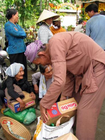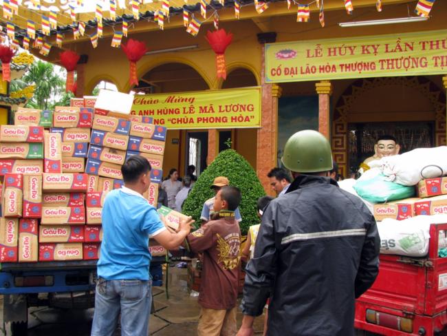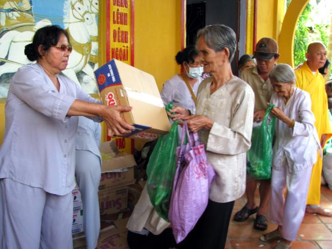 Cũng nhân dịp này, BTC lễ giỗ Tổ chùa Phong Hòa không chỉ tặng quà cho bà con mà còn khuyến khích, hướng dẫn họ biết niệm Phật, có cơ hội nghe thuyết Pháp, dẩn dắt họ gieo duyên với Phật pháp dần dần… Đại đức Trụ trì và Phật tử chùa Phong Hòa đã tổ chức trao tặng 500 phần quà cho bà con tại địa phương vào thời điểm trước và trong ngày giổ Tổ với tổng số tiền là trên 100 triệu đồng. Mỗi phần quà trị giá ngoài 200.000 VNĐ, bao gồm: gạo, 1 thùng mì gói, sửa, đường, bột ngọt, dầu ăn, xà bông và 100.000 VNĐ tiền mặt.