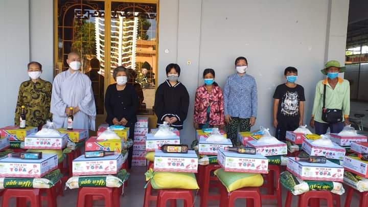 Cùng ngày, Ni Sư Như Chánh trụ trì chùa Giác Tôn (Xã Tân Bình, Châu Thành) Chư Ni và Phật tử mạnh thường quân phát 350 phần quà, với tổng số tiền 88 triệu đồng.