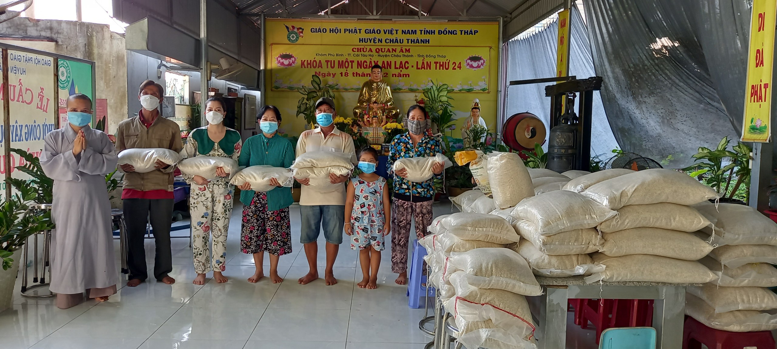 Ngày 22/01/2022 (Nhằm ngày 20/12/ Tân Sửu) tại chùa Quan Âm (khóm Phú Bình, thị trấn Cái Tàu Hạ, huyện Châu Thành) Sư Cô Tâm Thường trụ trì, được sự phát tâm tài trợ từ Phật tử Ngọc Điệp và Phật tử Nguyễn Hoa Mỹ Tp. Hồ Chí Minh, chia sẻ 150 phần quà 1.500 kg Gạo đến 150 hộ gia đình hoàn cảnh khó khăn nhân dịp đón Tết Nhâm Dần 2022.
